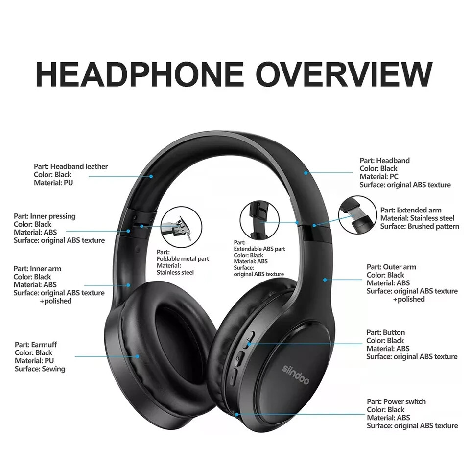 Siindoo is a national high-tech enterprise engaged in researching, developing, manufacturing, marketing and service. Products covered ANC headphones, BT headset, TWS earphones, Neck-band earphones etc. Founded in 2008 and headquarted in Shenzhen,China. Factory have certified with ISO9001 & BSCI.All of products are greatly appreciated by customers all over the world. Welcome to share your any ideas with us!! Siindoo JH-919 headphones deliver High Fidelity stereo sound which results from a 40mm neodymium driver and Ear cushion design – both combining to provide superior immersive HIFI sound quality and a well-closed environment for your ears to enable you lose yourself in the music. Siindoo JH-919 headphones are built from materials that are extremely nice to touch which provides the model premium outlook.The memory-protein ear cushions ensure lasting wearing comfort as they simulate human skin texture.The bluetooth headset can be adjusted to the perfect fit with the help of the durable quality stainless steel slider and soft padded headband.Take it with you on your each travel to enjoy music anywhere, anytime.The Skin-friendly memory-protein earmuffs and headbands contribute to maximum comfort regardless of long-term use. Siindoo JH-919 Built to provide a quick and stable Bluetooth connection. Just Long press power button and the headphones will be in ready to pair mode. The Wireless Headphones are compatible with all Bluetooth or 3.5mm plug cable enabled devices! You can also receive calls and have hands-free communication. Siindoo JH-919 Headphones are Rechargeable. 400mAh battery, 28 hours of music time, 2-2.5 hours Fast Charing. After 15 hours of playtime, you can switch to wired mode and enjoy your music NON-STOP. You do not need to worry about power shortage problem for the long travel. specification Siindoo JH-919 bluetooth headset Bluetooth chipset:JIELI6956A Bluetooth version: V5.1 Battery:400 mAh rechargeable lithium battery Charging portType-C Speaker Driver Units:Φ40mm,32Ω±15% Battery life Standby time 266H Charging time:.<2.5H Music play time:28H Talk time 27H Working distance:≥10M Surface: Original ABS with texture Feature of over ear bluetooth headset: • Ergonomic design, more comfortable to wear • Stainless steel expandable headband •Foldable and stretchable design,portable to take • Soft snug leather headband • Frosted surface texture what's in the box: • 1 x Siindon JH-919 headset • 1 x 0.3m Type-C charging cable • 1 x 1.2m AUX cable