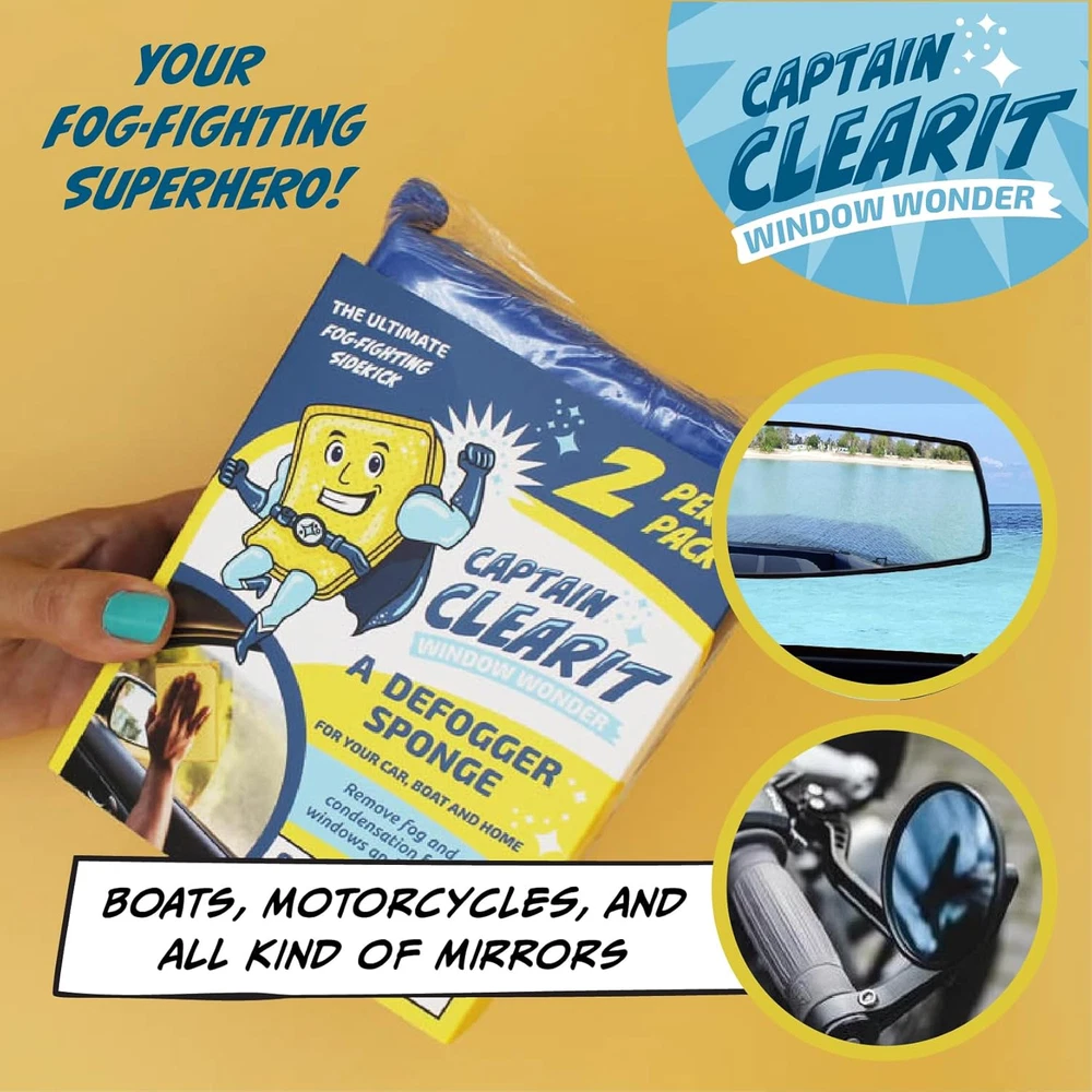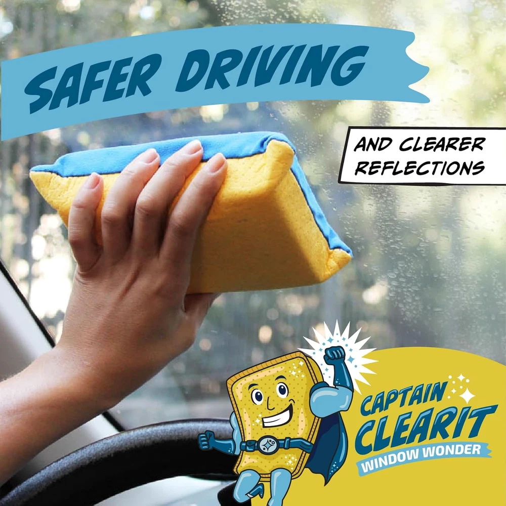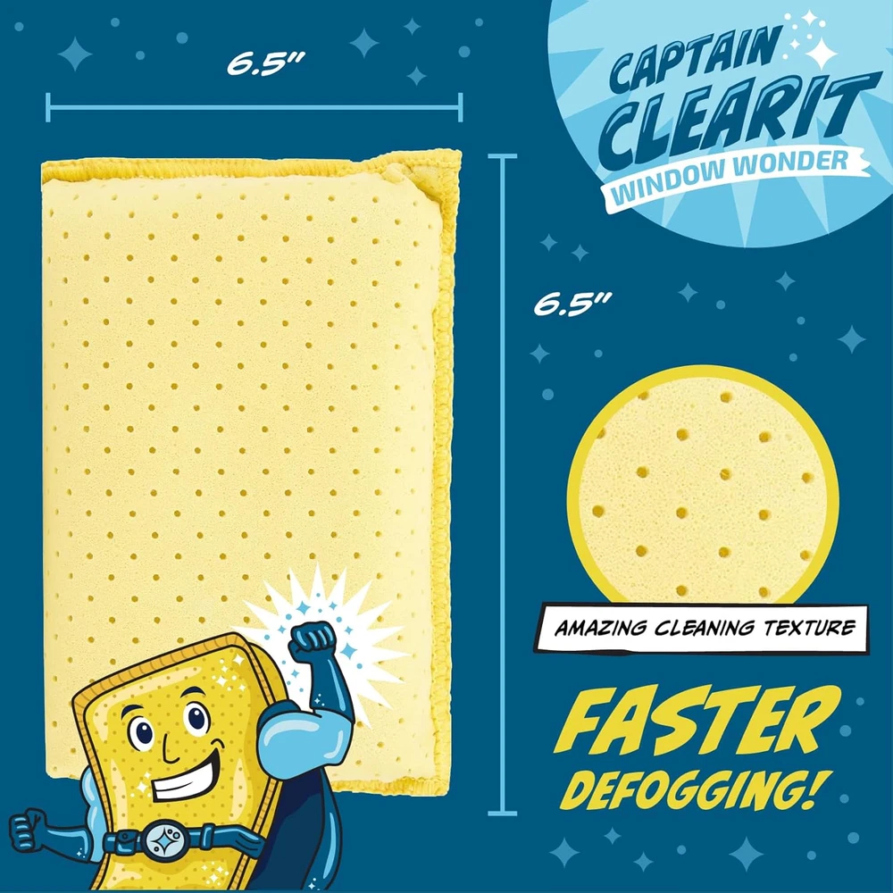 Store New Arrivals Add to Favorite View Feedback Contact JJ KENT CAPTAIN CLEARIT Window Defogger Sponge - Window Cleaner Tool for Car Windshield, Mirrors, Glass - Non-Scratch, Super Absorbent Window Cleaning Sponges - Car Cleaning Supplies 2-Pack Description Item model number LTK-107-CC Item Package Quantity 1 Color Yellow Product Dimensions 6"L x 4.25"W x 2"Th Country of Origin China Item Weight 0.15 Pounds Model Name LTK-107-CC Surface Recommendation Glass and Mirrors Manufacturer JJ Kent Special Feature Eco-Friendly Brand JJ KENT Included Components Sponges THE FOG-FIGHTING HERO: Say goodbye to fogged-up windows and mirrors in your car and home! This glass and mirror cleaner sponge is your ultimate solution for quickly eliminating condensation and restoring crystal-clear visibility. EXTRA-LARGE SPONGES FOR CLEANING: The ideal addition to your home car wash kit as it effortlessly tackles any glass or reflective surfaces, clearing fog and steam from windshields, mirrors, and more with ease. HIGHLY ABSORBANT: Our super absorbent car wash sponge material soaks up moisture in seconds, leaving your surfaces dry and streak-free. MULTI-SURFACE HOUSEHOLD CLEANING TOOLS: Not just for automobiles! Use CAPTAIN CLEARIT on bathroom mirrors, glass doors, or any smudged surface. DURABLE & LONG-LASTING: Made with high-quality, non-scratch materials, CAPTAIN CLEARIT is designed to withstand repeated use without losing its effectiveness. Product Description Eliminate Fog and Condensation This sponge swoops in to save the day, eliminating fog and condensation from car windows and bathroom mirrors faster than you can say "Holy steam, Batman!" 2 Per Pack Each package includes two CAPTAIN CLEARIT sponges. Keep one at home and one in the car for on-the-go fog fighting. The video showcases the product in use. The video guides you through product setup. The video compares multiple products. The video shows the product being unpacked. Whether you're battling steamy bathroom mirrors after a hot shower or ensuring clear visibility while driving in cold weather, CAPTAIN CLEARIT has you covered. Your Anti-Fog Ally Clear Windows for Safe Driving Quickly defog car windows and mirrors for safe visibility while driving. Clear Foggy Mirrors Easily Just a few swipes with CAPTAIN CLEARIT after a steamy shower removes condensation for a clear reflection. Ideal for Motorcycles Road warriors carry CAPTAIN CLEARIT along for an easy way to clear windshields and mirrors, and wiping down bikes at the end of the day. Great for Boats and Watercraft Boaters love this sponge for clearing wet and fogged up windshields and mirrors, and wiping down fiberglass after a day on the water. Why Choose Captain Clear It Extra-large and Super-Absorbent The sponge's durable construction and high-quality materials ensure long-lasting performance, making it a must-have accessory for your bathroom and vehicle. Efficiently clears away fog faster and easier than traditional microfiber cloths, squeegees, newspapers and other common defogging methods. Perfect for Windshields, Side Windows, and Mirrors CAPTAIN CLEARIT ensures you have a clear, safe view while driving, especially during cold weather conditions. It also works wonders on bathroom mirrors, effortlessly removing steam and condensation after hot showers, so you can see your reflection clearly without waiting for the fog to dissipate. CAPTAIN CLEARIT on Duty For Bathroom Mirrors Extra-large size covers more surface area For Car Windshields Rapid fog elimination for safer driving and clearer reflections Great Gift or Stocking Stuffer Fun superhero theme makes a great gift or stocking stuffer 2-Pack for Home and Auto One for home, one for car More effective than microfiber cloths, squeegees, or newspapers ABOUT US We offer the best prices around on high quality products. Our E-store includes media such as books, movies, music and games while offering electronics, toys, sporting apparel, clothing, tools, general home, garden items and more. SHIPPING We are always working hard to ensure your package arrives as soon as possible. Please understand that some factors like weather, high postal traffic, and the performance of shipping companies are outside of our control. We offer free shipping to the lower 48 states and ship within 2 business days of payment, usually sooner. We do not accept P.O. Boxes. Please provide a physical address. RETURNS We offer a 30-Day Return Policy on items which you are not completely satisfied with. You have the option for a full-refund or an exchange of the item. No returns are available on items shipped outside of the USA. PAYMENT We accept PayPal. CONTACT US This page content is yet to come Please ad us to your favorite seller and visit again later Thank You CUSTOMER SATISFACTION We try our very best to make sure every customer is completely satisfied. If there's a problem, message us! We're happy to help.
