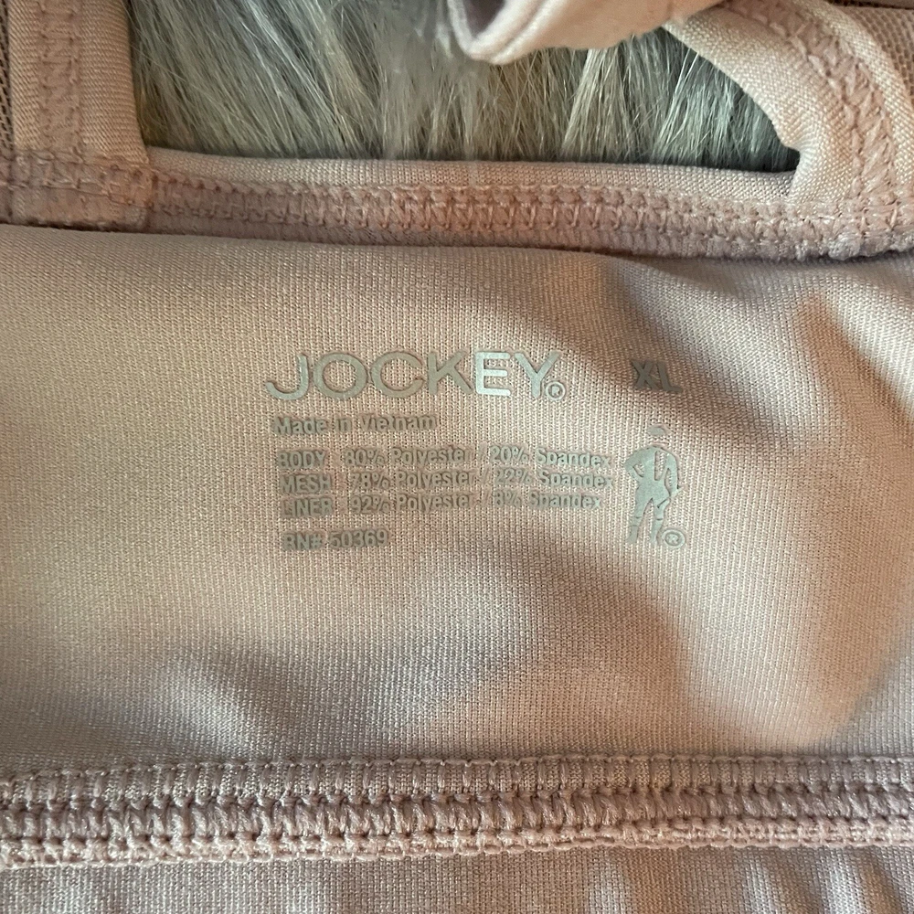 JOCKEY Sz XL Pale Pink Zip Front Sports Bra Padded cups Zipper front Racerback straps with mesh inset In good, clean preowned condition