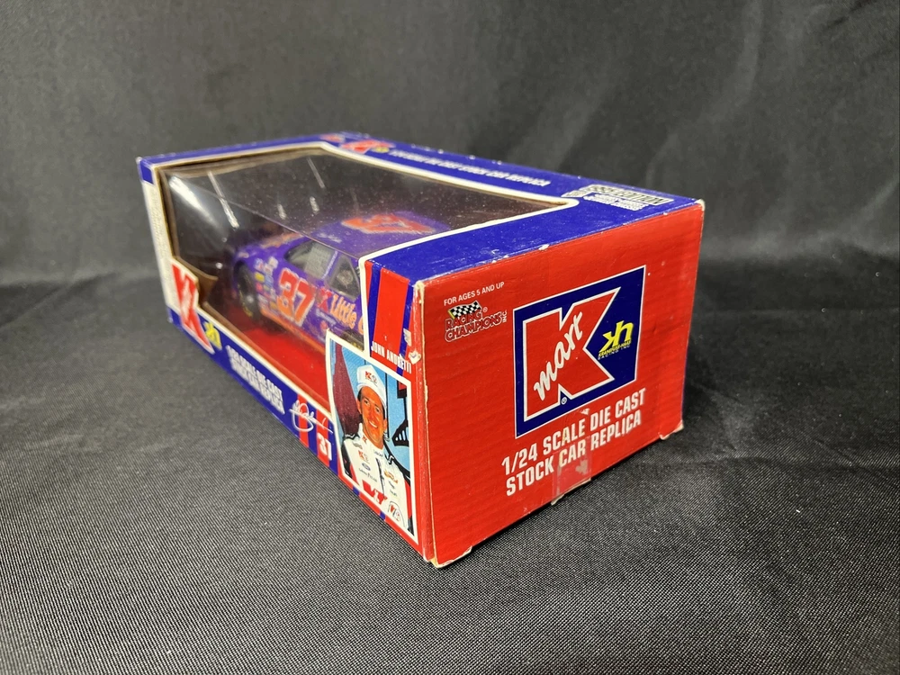 This is a 1:24 scale diecast model of a 1995 Ford Thunderbird #37 car driven by John Andretti for Little Caesars in NASCAR. The Racing Champions manufactured car is multi-colored and features the Cars character family. It is not autographed and is a collectible bank. Used-packing may show signs of wear. SB
