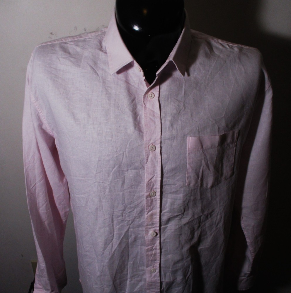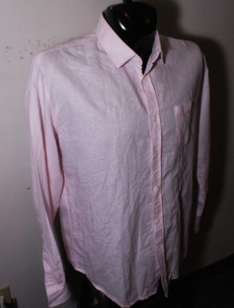 See my EBAY STORE at “SAMTPC53” to view 100’s more of my Men's SHIRTS!!! Combine Shipping: (on multiple items you pay full price on heaviest item first and then HALF PRICE shipping on ALL other clothes items. Men's Long Sleeve Linen Shirt. Brand: JOHNNY BIGG. Description: men's Linen JOHNNY BIGG long sleeve shirt , button front, button cuffs, pocket on front, see pics Color: Pink. Size: XL (please see measurements). Measurements: 24" armpit to armpit, 30" shoulder to hem, 20" insleeve. Material: 55% Linen, 45% Cotton. Condition: Very Good condition.