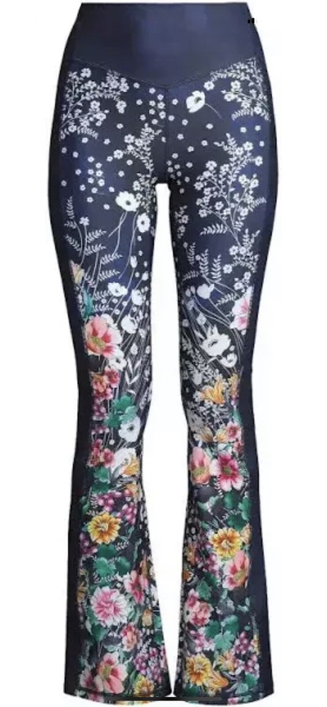 These Johnny Was Size-S leggings feature a floral pattern in multicolor. The high-rise waist and flared leg design provide comfort and style, making them suitable for travel, activewear, and casual occasions. Made of polyester blend fabric, these leggings have a waist size of 26 inches and inseam of 31 inches. They offer stretch, pockets, and are ideal for activities like cycling, yoga, and running.