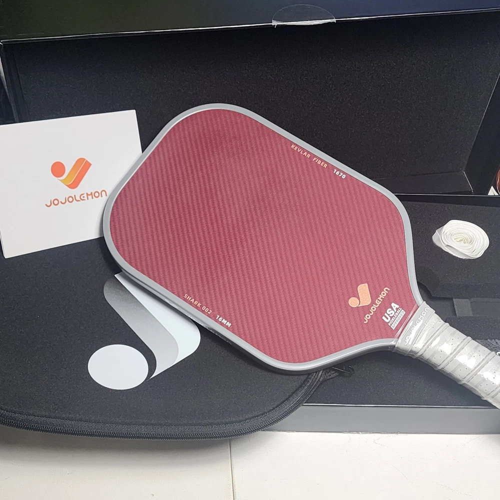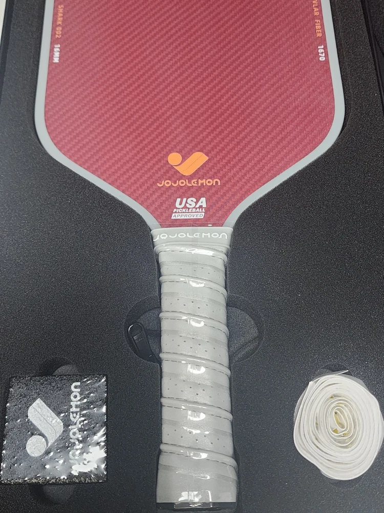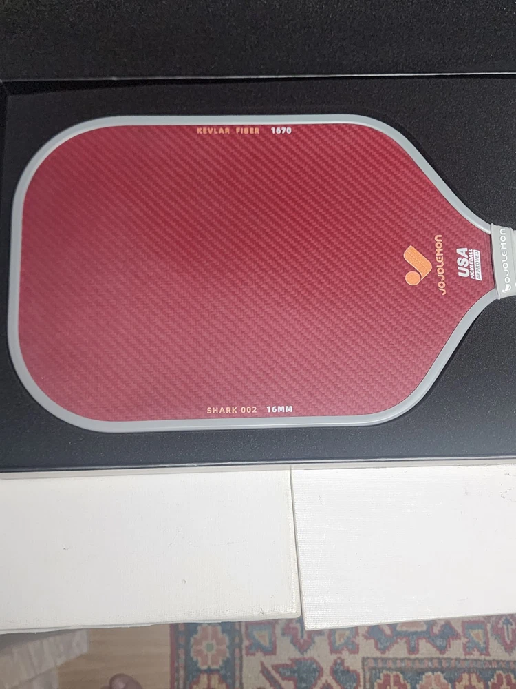 Condition: New (Open box for pic's) Pickleball Paddles, Carbon Fiber Pickleball Paddle with a 16mm Shark Power Polymer Core, The Pickleball Rackets Designed for Ultimate Spin & Consistency Features & details INNOVATIVE HYBRID ARAMID SURFACE: The SHARK 002 pickleball paddle combines Kevlar 1670 and T700 Carbon Fiber materials, providing outstanding spin for roll volleys and pinpoint control for finesse shots like dinking. THERMOFORMED UNIBODY CONSTRUCTION: Our pickle ball rackets undergo advanced high-temperature molding, integrating all components seamlessly. These ensure enhanced stability, durability, and optimized power with every shot. ADVANCED SHARK POWER CORE: Designed with a 16mm polymer honeycomb core, the racquet offers a larger sweet spot and consistent shot response, giving players better control and accuracy during intense rallies. GRIP MASTERY COMFORT: Features a grip with anti-slip ridges and sweat-absorbing cushion, providing a comfortable and secure hold, reducing hand fatigue, and ensuring firm control throughout extended matches. FOAM-INJECTED EDGE GUARD: 33D high density edge foam-injection helps to absorb vibrations and minimizes impact, allowing smoother, more controlled shots with reduced strain on your arm. USAPA APPROVED PICKLEBALL PADDLES: Meticulously crafted to meet USAPA standards, this paddle is certified for use in professional tournaments, guaranteeing top-notch performance on the court. OPTIMAL WEIGHT & DIMENSIONS: With an ideal weight of 8.1 oz, a 5.2-inch grip length, and a 4.25-inch grip circumference, the paddle provides excellent maneuverability and balance, allowing you to respond swiftly and execute precise shots with ease.
