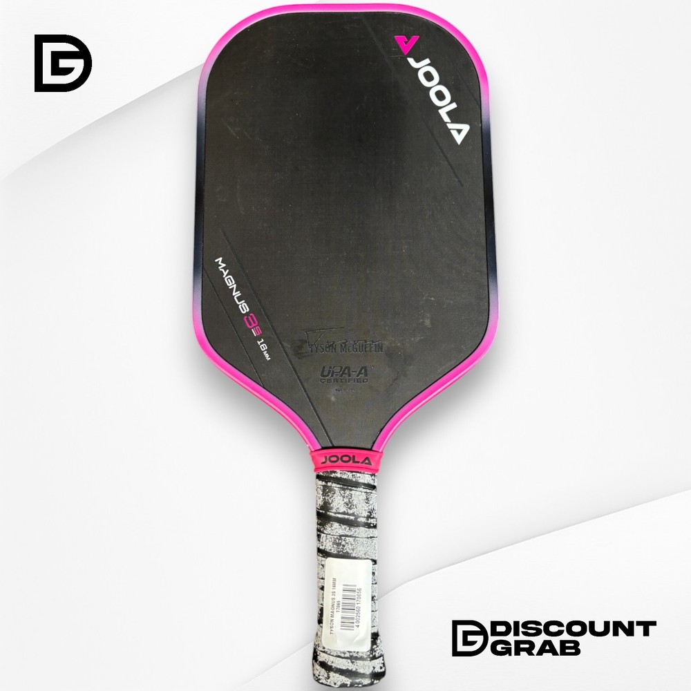 JOOLA Tyson McGuffin Magnus 3S 16mm Pickleball Paddle Product Description This is a JOOLA Tyson McGuffin Magnus 3S 16mm Pickleball Paddle. Item has been thoroughly inspected and has been previously owned with some markings/blemishes. Otherwise still in very good working condition, see photos. Model: JOOLA Tyson McGuffin Magnus 3S Thickness: 16mm Core Paddle Type: Performance-level pickleball paddle Player Signature: Tyson McGuffin Condition: Excellent / Lightly used No cracks or damage Edge guard and face in great shape Key Features: Charged Carbon Surface Technology – Delivers explosive pop and precise control Reactive Polymer Core (16mm) – Enhanced dwell time and soft touch Sweet Spot Optimization – Enlarged sweet spot for more consistent play Aero-Curve Shape – Improves swing speed and paddle maneuverability Carbon Friction Surface (CFS) – Excellent spin potential on every shot Sure-Grip Handle – Comfortable, moisture-wicking grip with shock absorption Specs: Weight: Approx. 8.0–8.4 oz Grip Circumference: 4 1/4" Handle Length : 5.5" Paddle Length: 16.5" Width: 7.5" Ideal For: Competitive and tournament-level players Players who want a balanced mix of power, spin, and control Additional Info: Ships quickly with protective packaging JOOLA is the official paddle sponsor of top-ranked pro Tyson McGuffin Trusted seller – Buy with confidence! Product Specifics Policies Shipping We ship every day Monday - Friday. All orders ship the following business day. Top Rated We have sold over 145,000 items on eBay and counting! Returns We hope you love your purchase, however if you need to return it, we have a 30 day return policy. Please note that the item you receive may vary slightly from the one pictured. We strive to provide accurate representations, but due to factors such as manufacturing variations or availability, the condition and appearance of the product you receive might differ. We cannot guarantee that every item will match the exact one depicted in the photo. Rest assured, our commitment to delivering a high-quality product remains unchanged. If you have any concerns or questions, feel free to reach out to us before making your purchase. Your satisfaction is our priority. Questions? Have a question you need answered? Message us on eBay and we'll respond within 1 business day! We want you to be confident with your purchase and are here to help put your mind at ease. About Us We are a small eBay store based out of Indianapolis, IN. We aim to provide great products at an even better discount. We post new items daily and always have a great grab bag of items to choose from. We rarely offer the same thing twice and that is what makes our eBay store so much fun. If you have any questions or concerns please feel free to drop us a message here on eBay and we will get back to you within 1-2 business days. Suggested For You Joola ben Johns Perseus Pro IV 16mm Pickleball Paddle $199.99 Lotto Arco 16mm Pickleball Paddle (w/ Packaging) $69.99 Monarch Mercenary Max Pickleball Paddle $59.99 Joola - Perseus MOD TA-15 (16mm) Pickleball Paddle $149.99 Joola Perseus MOD TA-15 (16mm) Pickleball Paddle $149.99 Joola Perseus MOD TA-15 - 16mm - Pickleball Paddle $149.99 JOOLA - Ben Johns Hyperion CFS 16 Pickleball Paddle $109.99 Lotto Arco 16mm Pickleball Paddle $69.99 Add suggested items to your listings - Check it out on 3Dsellers.com eBay listing template by 3D sellers.com - Try for Free!