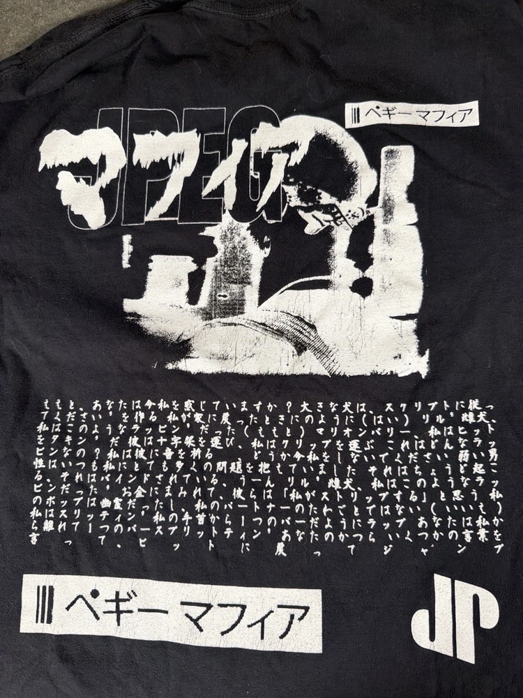 The JPEGMAFIA 3PEG Graphic T-Shirt in XL size is a black cotton shirt featuring a crew neck and short sleeves, making it perfect for the summer, fall, and spring seasons. This hip hop themed shirt is machine washable and has a regular fit. The shirt is from the brand JPegMafia, manufactured between 2020-2029, and is designed for men who appreciate the experimental and innovative sounds of hip hop music.