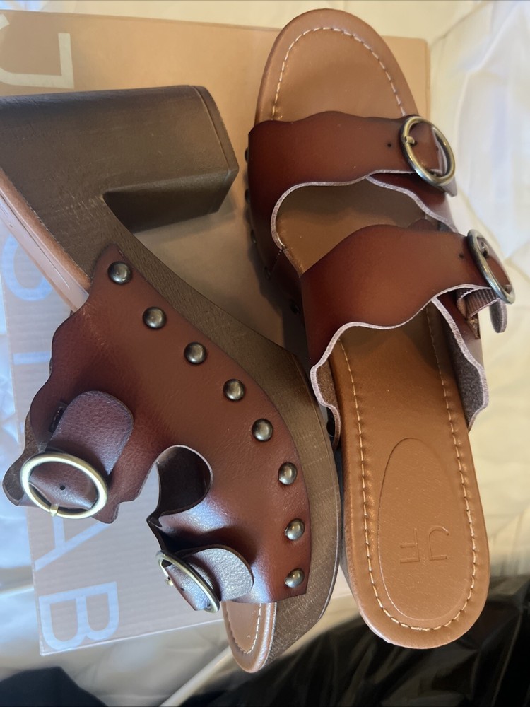 $ 9.51KENNETH COLE NEW YORK Womens Cocoa Beige 1" Platform Wedge Mules Shoes 7.5
