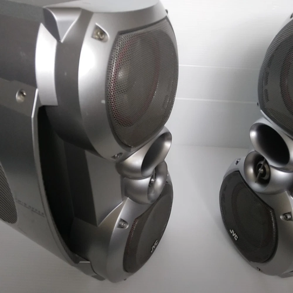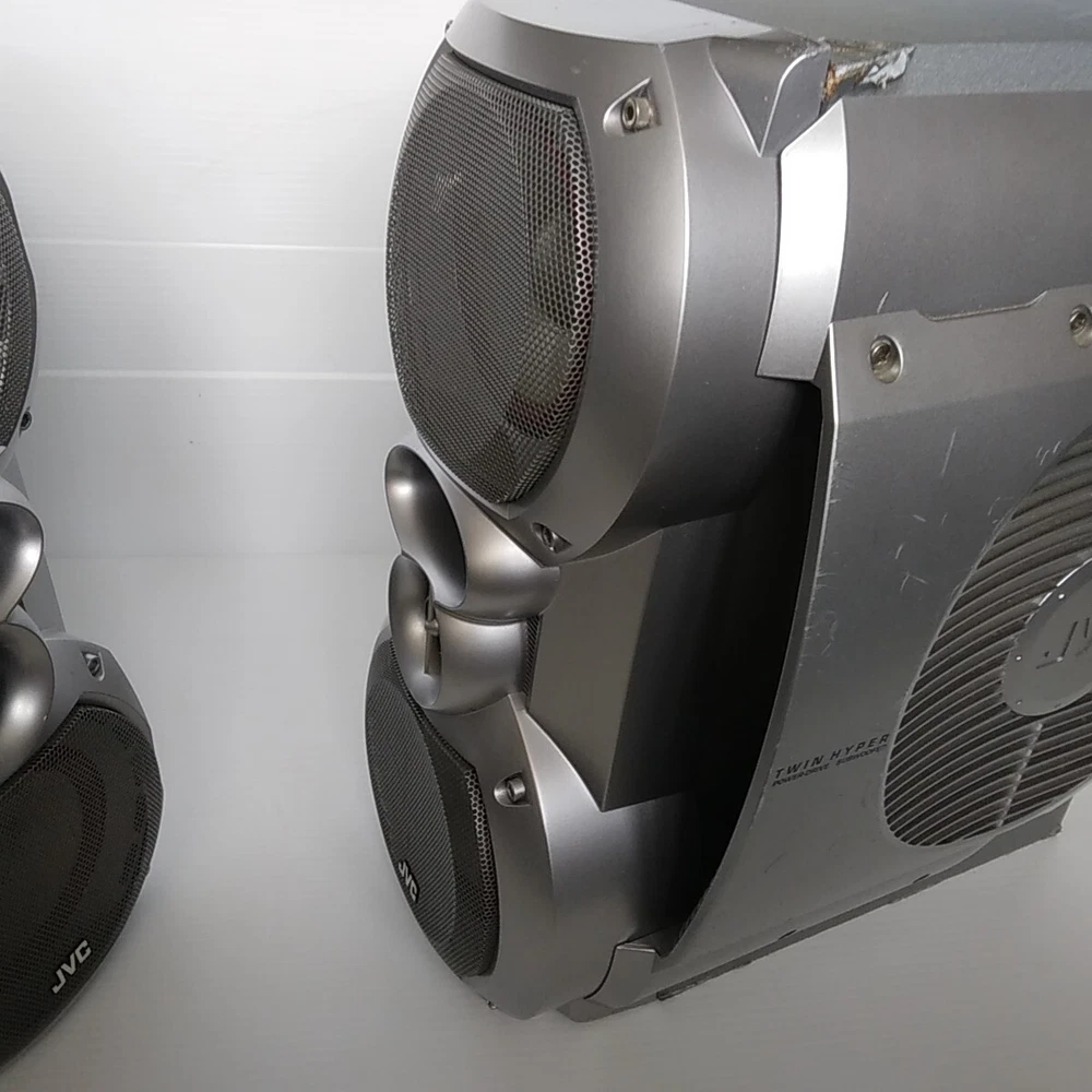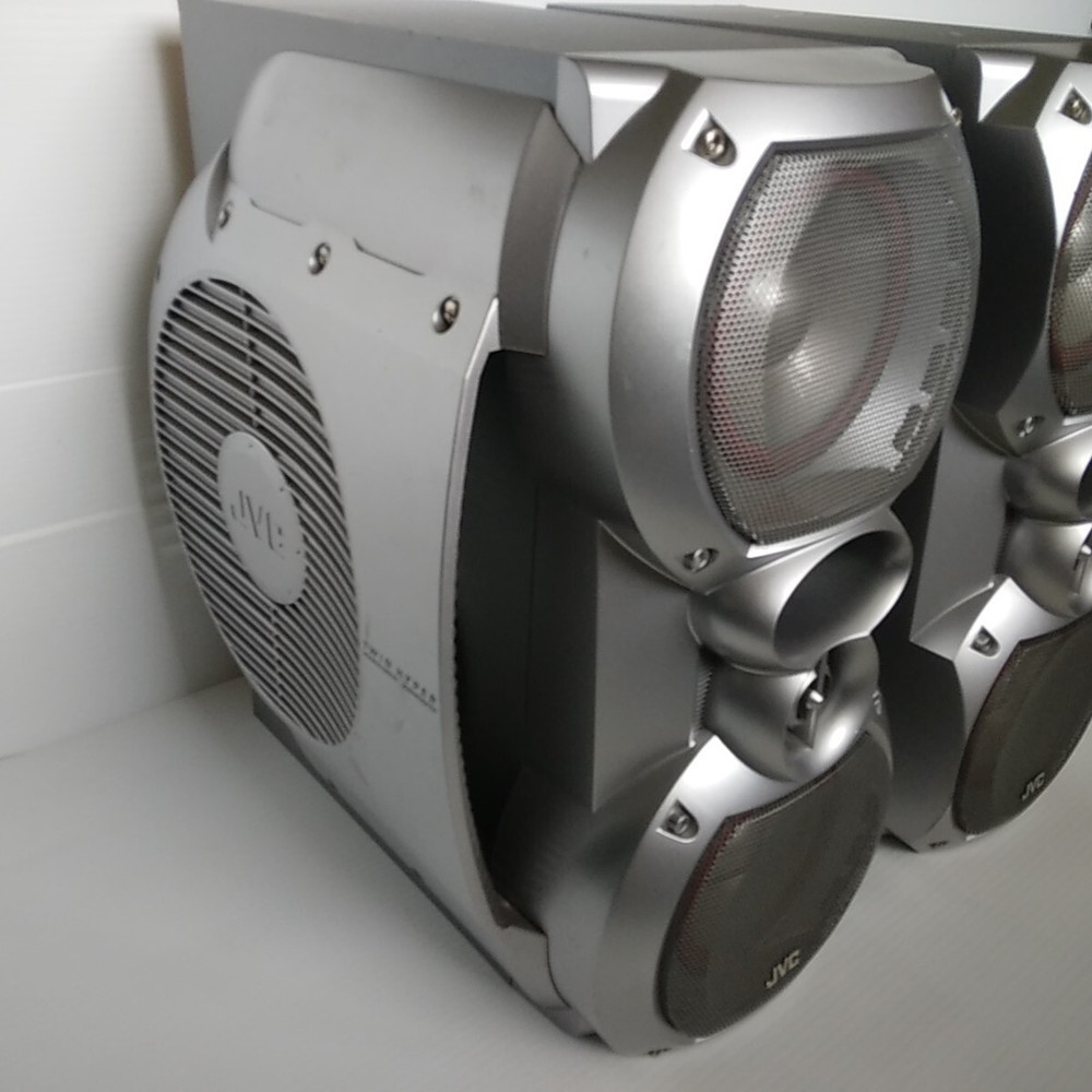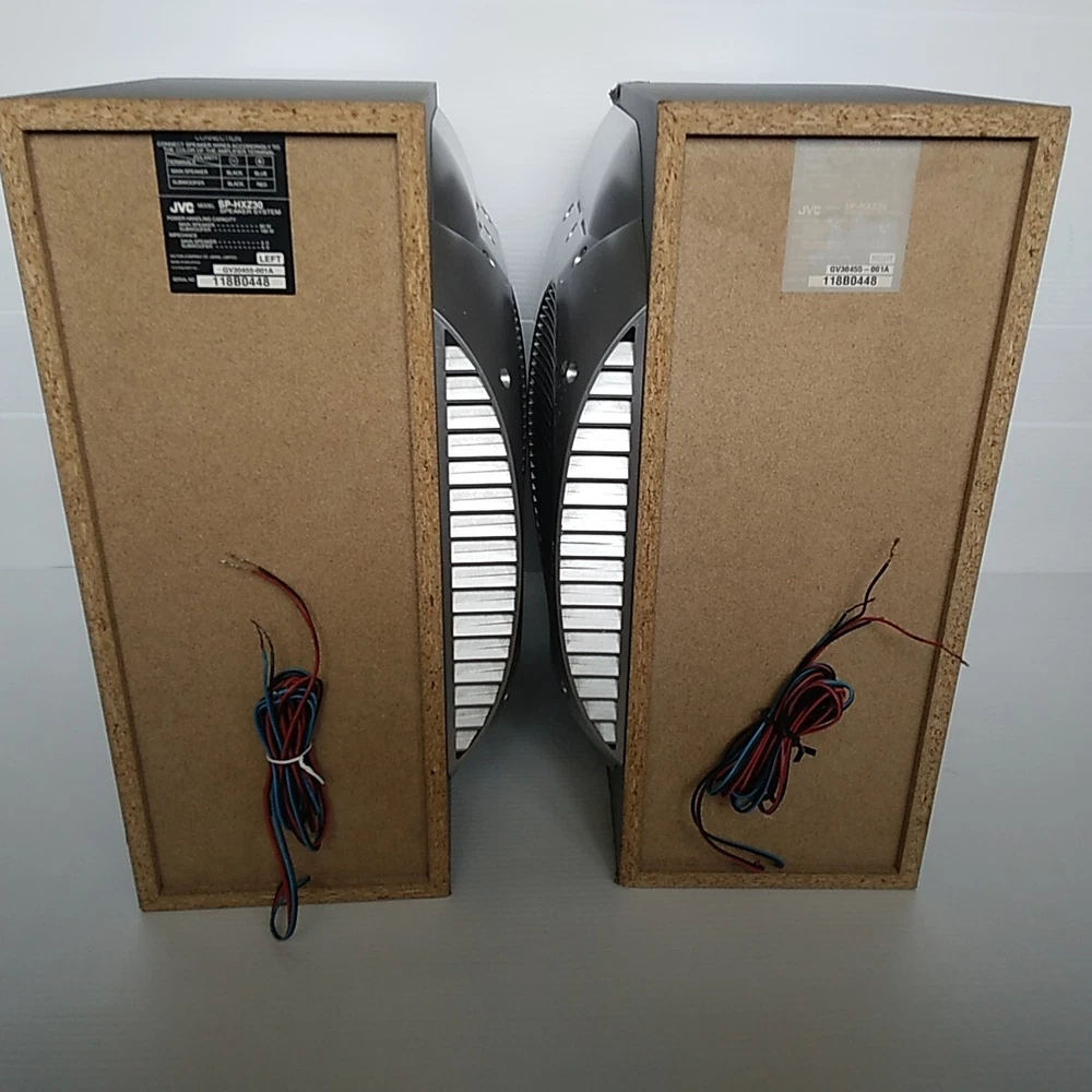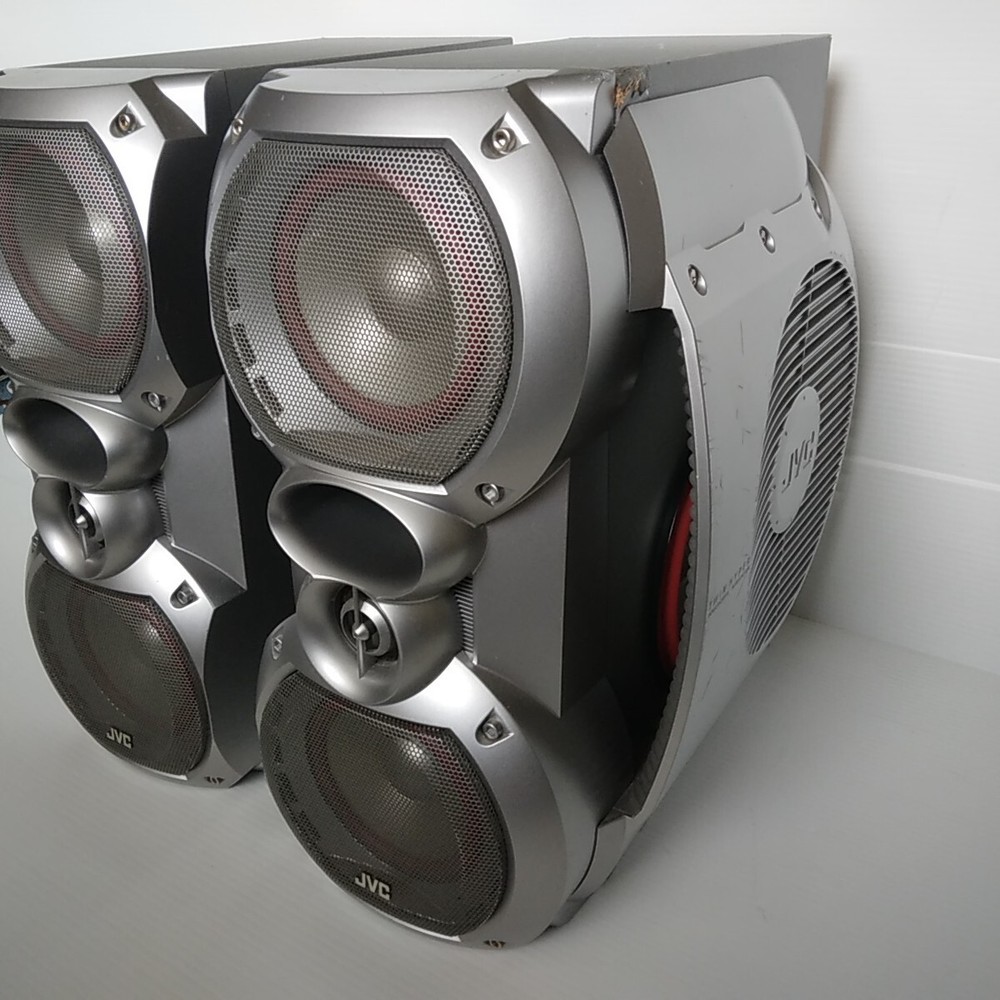 Left and right JVC SP-HXZ30 stereo speakers with built in subwoffer. Speakers only. These speakers have been tested with the JVC HC-Z30 system and work well. In decent cosmetic condition. Both have some scratches, dings, and scuffs. See pictures for a detailed look. These speakers will ship well protected. Thanks for the interest.