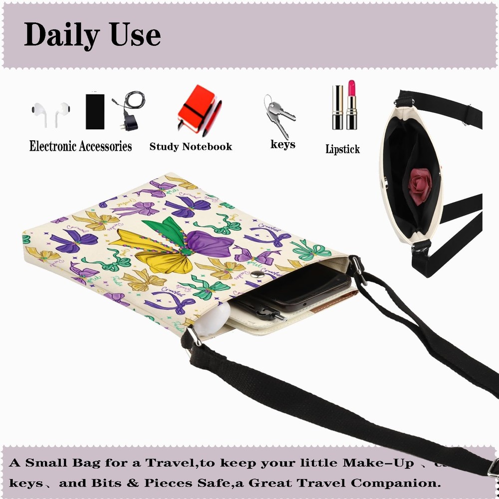 JYTAPP Purple Green Carnival Bow Crossbody Bag Carnival Party Purse for Women Holiday Party Celebration Gift Product Details Color: Beige Brand: JYTAPP MPN: Does not apply UPC: Does not apply EAN: Does not apply Product Dimensions : 7.87 x 0.79 x 9.06 inches; 0.16 ounces Department : Unisex Adult Date First Available : April 16, 2025 Country of Origin : China ❤Personalized gifts pouch bag for women,,girlfriends, mother, mom, wife, lovers ,friends, bride, bridesmaids on wedding party, Valentine's day, Mother's day, bridal shower, Getaway,Weekend,Bachelorette Party, graduation, holiday and other milestone moments. ❤Friendly reusable tote bag for every day use.Portable makeup bag with large capacity for your mascara, lipstick, face cream, cell phone, sunglasses, Cards and other travel gadget. ❤Easy to clean: Machine wash cold. It's recommended to line dry. Tumble dry will cause shrinking. ❤We are proud to provide high quality products. If you are not satisfied with your products, please contact us.
