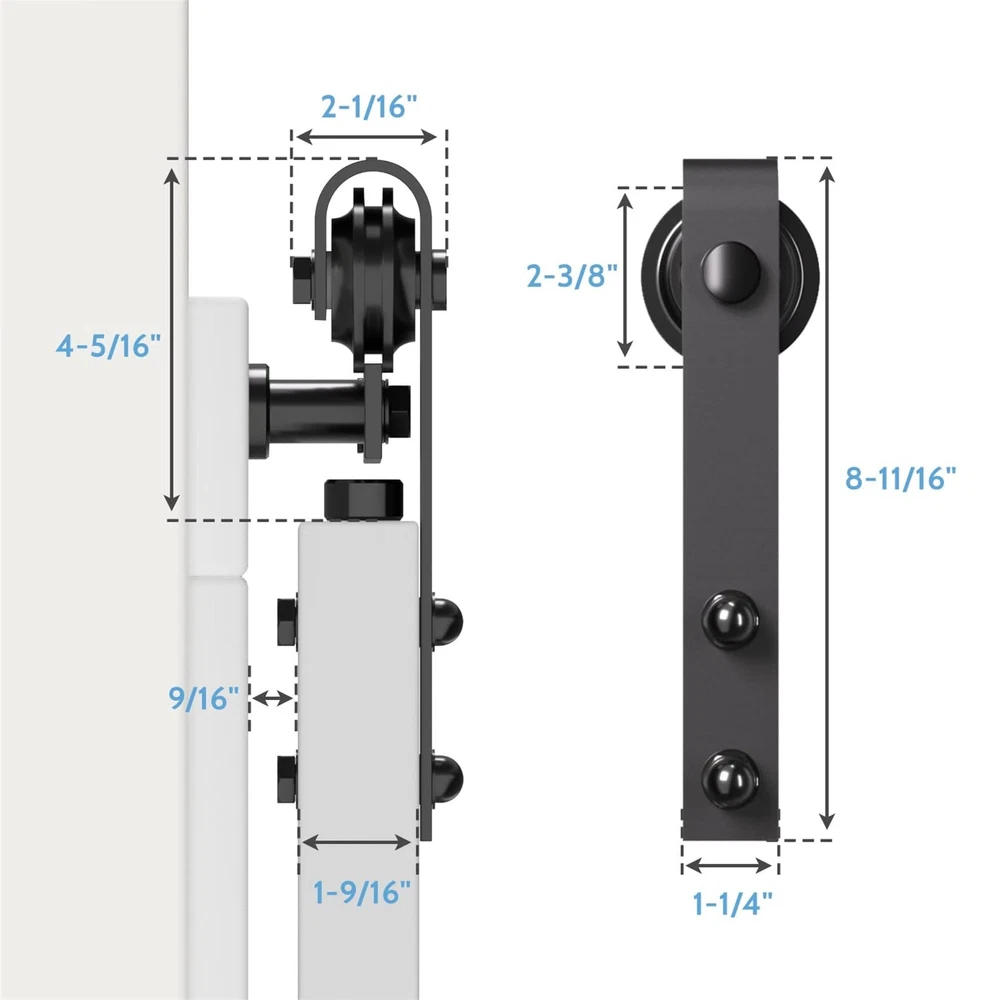 Basic Info: Barn door hardware kit maximum hold barn door for 265 lbs, Fit for door panel thickness from 1.375" to 1.75", Fit for door panel width up to 36"(door not included). Strong and Durable: Barn door track are made of high standard carbon steel with black powder coating, This greatly increases the robustness of the barn door track and makes it water, dust and rust resistant, all attributes that allow the entire barn door hardware kit to maintain long-term stable operation. Smooth and Quiet: Sliding door kit is based on the POM made wheels(2 bearings inside wheel), which allows the barn door system to slide more silky smoothly and quietly and does not easily cause wear and tear on the track. Less Space Ocuupy: Compared with normal sliding doors, barn doors and hardware included are more space-saving, the space behind your door is not bound, you can easily stack items behind the door, it is your space becomes more neat, this is the biggest reason why we choose barn door system. What Included: 5* barn door track(combine to 6ft), 2* barn door rollers, 2* door stoppers, 2* anti-jump pads, 1* floor guide, 1* maunal. Incase you get any confusion on installation or missing parts ,kindly contact us via amazon ,we may get back to you in 24 hours. "ONLY BARN DOOR HARDWARE KIT FOR SALE, BARN DOORS ARE NOT FOR SALE."