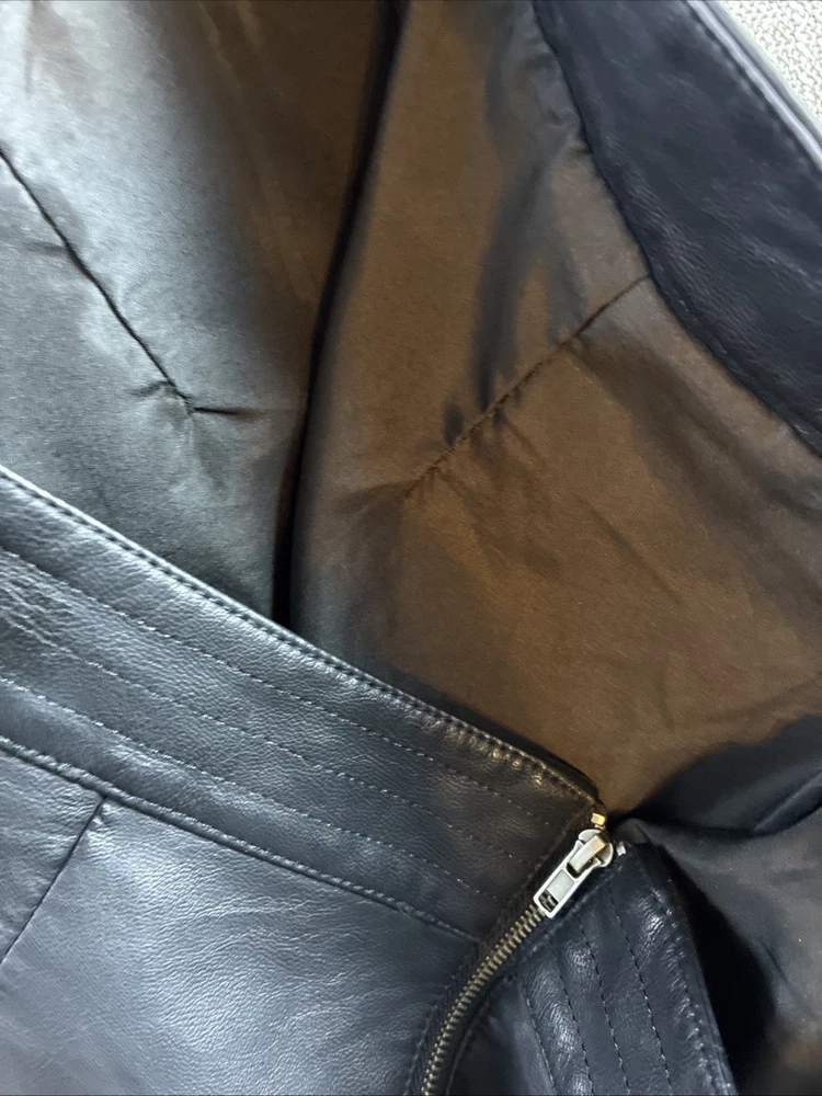 Refer to photos for measurements This item is in good condition Black leather with a zip closure