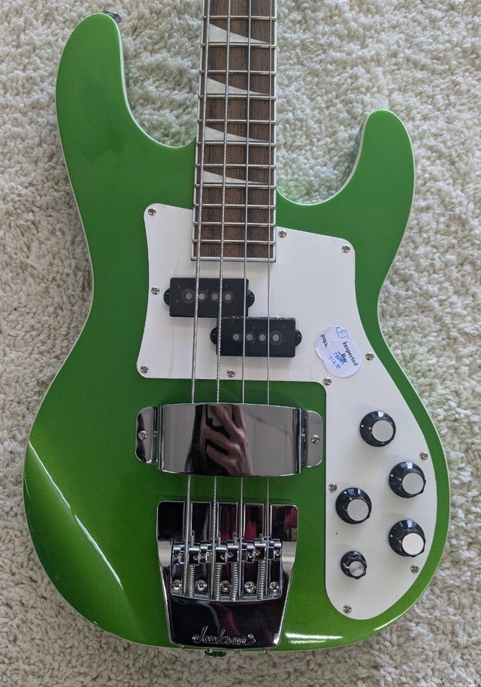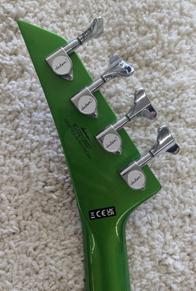 Jackson X Series Concert Bass CBXNT DX IV, Laurel Fretboard Absynthe Frost -Demo Description We got this great bass guitar directly from Jackson as a new guitar, but it is a model we will not be carrying in 2025 so we are selling it as a store demo. It is still a new guitar with the full warranty and these are actual photos of the guitar you will get, but by calling it a DEMO we can sell it for 20% off the regular street price without violating any of the Jackson company sales policies. This one carries the serial number ICJ2213507. It weighs in at 8 pounds, 7.45 ounces. The all-new Jackson® X Series Concert™ Bass CBXNT DX IV is a highly versatile bass designed for one express purpose—bringing the thunder to your music. Upgraded electronics, classically brutal style and fast, efficient playability make this entry into the lineup a fundamental force to be reckoned with. Perfect for rock or metal—or other styles that demand low, punchy bass—this instrument is an unbelievable value. This 34”-scale bass pairs a poplar body with a graphite-reinforced neck-through-body design that generates formidable sustain, while the speed maple neck contour, 12"-16" compound radius bound laurel fingerboard and 24 jumbo frets make for lightning-fast playability. The heart of this four-string beast is a Jackson J-style bridge pickup and Jackson P-style neck pickup, mated to an active 3-band EQ circuit for adding punch, cut, rumble or grunt to your sound. A brand-new stylish chrome Jackson Bass Bacher IV string-through-body hardtail bridge enhances note attack and sustain without altering your carefully crafted tone while the sealed die-cast tuning machines keep the strings in tune, no matter how hard you dig into them. The X Series Concert Bass CBXNT DX IV ups the ante in the style realm with all-new vivid Absynthe Frost, Gloss Black or Rocket Red finishes with white body binding, each featuring a parchment pickguard, pearloid sharkfin inlays, chrome hardware including the bridge pickup cover, black skirt-style control knobs and Jackson pointed 4-in-line black headstock. Highly affordable, the CBXNT DX IV is the perfect weapon for the musician who requires nothing less than the latest in high-performance bass technology. Product Specs Body Poplar Body Finish Gloss Body Shape Concert™ Bass Bridge Jackson® Bass Bacher IV String-Through-Body Hardtail Bridge Pickup Jackson® J-Style Pickup Color Absynthe Frost Commodity Code 9207901000 Configuration PJ Control Knobs Skirted Black Plastic with Indicator Controls Master Volume, 3-Band EQ (Bass, Mid and Treble) and Blend Country Of Origin Indonesia Fingerboard Laurel Fingerboard Radius 12"-16" Compound Radius (304.8 mm to 406.4 mm) Fret Size Jumbo Hardware Finish Chrome Headstock Jackson® Pointed 4-In-Line Headstock Binding White Model # 2916654618 Model Name X Series Concert™ Bass CBXNT DX IV, Laurel Fingerboard, Absynthe Frost Neck Construction Neck-Through-Body with Graphite Reinforcement and Scarf Joint Neck Finish Gloss Color Matched Neck Material Maple Neck Pickup Jackson® P-Style Pickup Number of Frets 24 Nut Material Black Plastic Nut Width 1.625" (41.3 mm) Orientation Right-Hand Pickguard 1-Ply Parchment Pickup Configuration PJ Pickup Switching Blend Control Position Inlays Pearloid Sharkfin Scale Length 34" (86.36 cm) Series X Special Electronics Active Electronics String Nut Black Plastic Strings Nickel Plated Steel (.045-.105 Gauges) Truss Rod Wrench Yes Tuning Machines Jackson® Sealed Die-Cast Specs SKU: 2916654618-ICJ2213507 – Manufacture: Jackson Default Specs Dexterity Right Handed Type Electric Country/Region of Manufacture Indonesia Number of Strings 4 Listing Type Instrument Bass Guitar < > Butler Music LLC Powered by SaleTurf