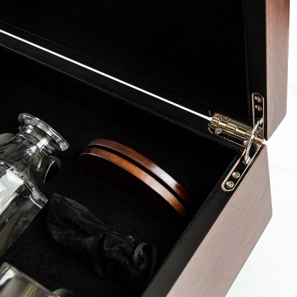 This beautifully engraved decanter set is perfect for all occasions. Made in the United States with high-quality glass, this 750 ml decanter comes with two 10oz glasses and a spill-proof lid/stopper. The set features the Jacksonville Jaguars football team and comes in a stylish wood box for easy storage.In addition to the team logo, the decanter can be personalized with your own initials, name, date, or design. Simply add your instructions in the personalization section and feel free to message us with any questions. The glasses are dishwasher safe, making clean-up a breeze. Impress your guests with this unique and practical addition to your bar tools and accessories collection.