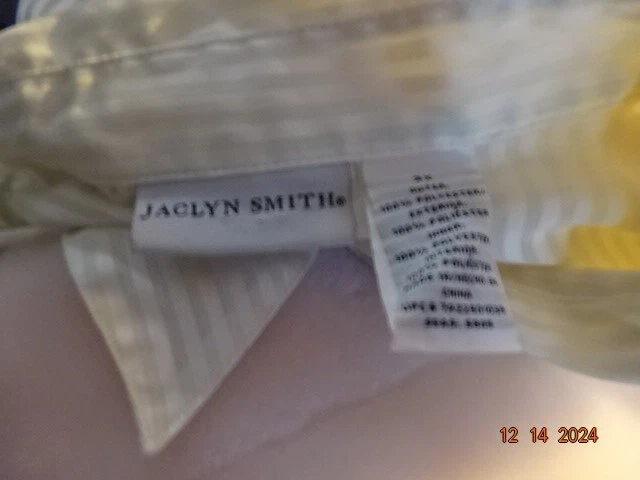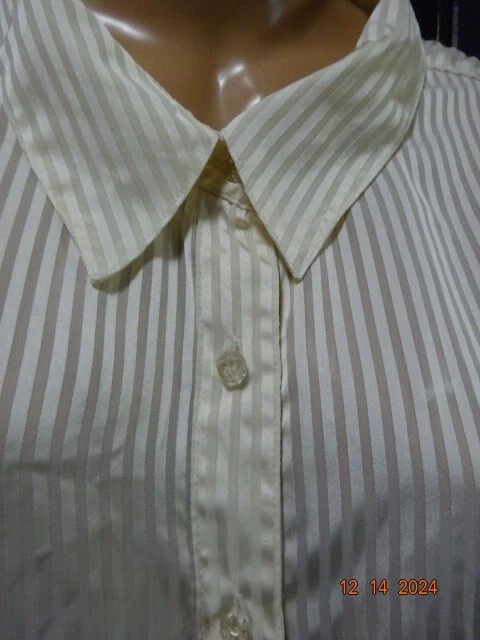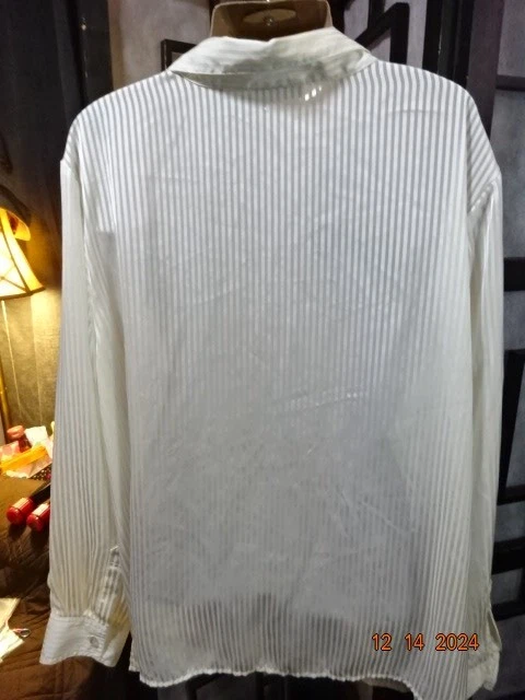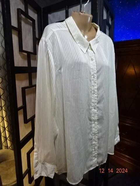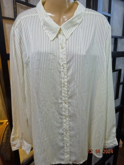 Jaclyn Smith Womans Semi Sheer Blouse Size 3X Cream Stripped Print Long Sleeve Button Front Laying flat from armpit to armpit measures: 28" From shoulder to bottome seam measures: 30"