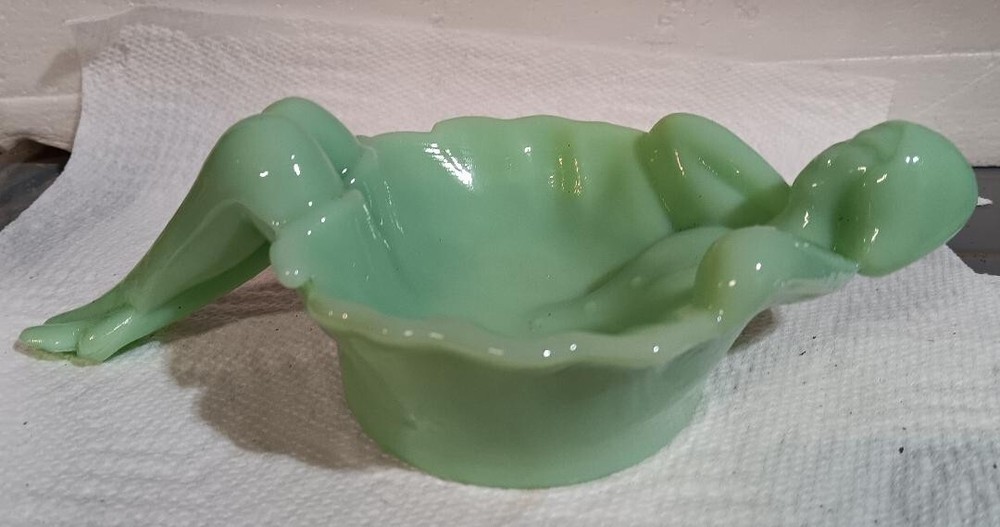 Jade Glass Ballerina Dish Measures 9 Inches Long BldBredRck R162TT