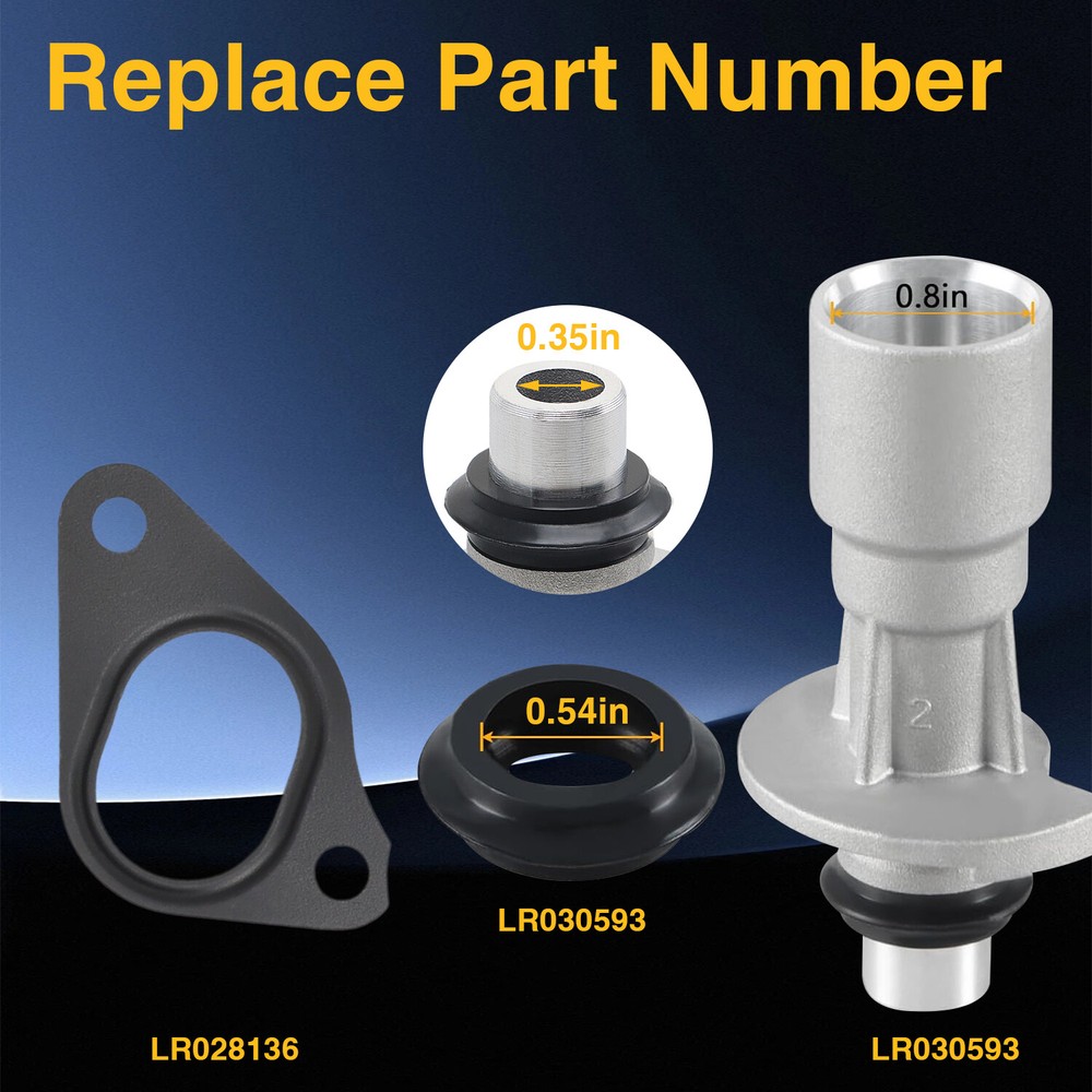 Store Home New Arrival Ending Soon Add to Favourites View Feedback Contact us Why Buy From us Items Description Brand New and High Quality Direct Replacement Please Take a Look at Your Old One Before Ordering. Please be very careful to check our photos, make sure the photos showed is the same as you wanted. We understand the need to receive the parts right away. That is why we ship most orders same day and ship USPS Priority Mail AT NO EXTRA CHARGE 【 Reliable Material 】 : Our upgraded engine oil cooler inlet connector is made of aluminum alloy material, compared with the plastic engine oil cooler inlet connector, it is more wear- resistant, corrosion-resistant, and with high hardness to extend the engine's service life, in addition, we provide you with two another water pump and two oil cooler outlet pipe seals, it is a perfect replacement. 【 Replace Part Number 】 : LR028136, LR030593, LR049370 LR011997, C2Z18658. 【 Compatible with 】 : Land Rover LR4 3.0L/5.0L 2010-2016; Land Rover Range Rover 3.0L/5.0L 2010-2021; Land Rover Range Rover Sport 3.0L/5.0L 2010-2022. 【 Package Included 】 : 1 pc LR028136 water pump oil cooler pipe; two LR030593 oil cooler outlet pipe seals, two LR049370 pump gaskets. 【 Installation 】 : The installation of the water pump oil cooler tube is simple, and we provide you with another two seals and two water pumps to replace conveniently. Fit for: 2010-2016 Land Rover LR4 3.0L/5.0L 2010-2021 Land Rover Range Rover 3.0L/5.0L 2010-2022 Land Rover Range Rover Sport 3.0L/5.0L Jaguar 2010 - 2022 5.0L V8 (AJ133) 2013 - 2019 3.0L V6 (AJ126) Package Included: 1x LR028136 water pump oil cooler pipe; 2x LR030593 oil cooler outlet pipe seals, 2x LR049370 pump gaskets as the First Picture Show Our Feedback Leaving feedback for us is important to the community. When you leave us 5 STAR positive feedback, it helps our future buyers purchase with peace of mind. If for any reason you are not happy, just reach out and we will do our best to take care of you. Delivery details Payment Terms of sales About us Contact us Delivery details Usually, Item will be shipped within 1 working day after full payment is received. Normally, you will receive the item in 5-7 days. Please contact us if you don’t receive the items after 8 working days after the payment. We ship the item to the given address in your order. Please make sure the address in your order is correct. Any non-received item caused by invalid address that left in your order is not in our full refund or replacement policy. Payment We accept multi way of payment, such as PayPal, Apple pay, credit card etc. After you place the order, please finish the payment a.s.a.p. Terms of sales The buyer has 30 days to return the item for refund or replacement. The shipping fees will be on seller or buyer according to the reasons of the returned purchase. The returned product must be under resalable condition and with original package. About us We are a professional worldwide wholesale auto parts company. We specialize in auto accessories for cars, trucks, motorcycles, ATV, UTV, ships, speedboats, furniture and gardening (lawn mowers, fellers, chainsaws, generators, car washers, etc.)Our professional team dedicated to provide high quality products for the most competitive prices and excellent service! Contact us If there is any question or problem, please feel free to contact us by eBay message, normally we get back to you within 24 hours, with our professional team we will provide the best service that we can. Copyright © 2023, Brotherauto-parts All Rights Reserved