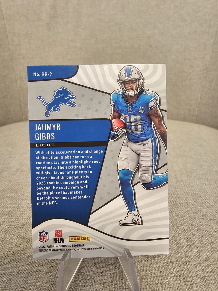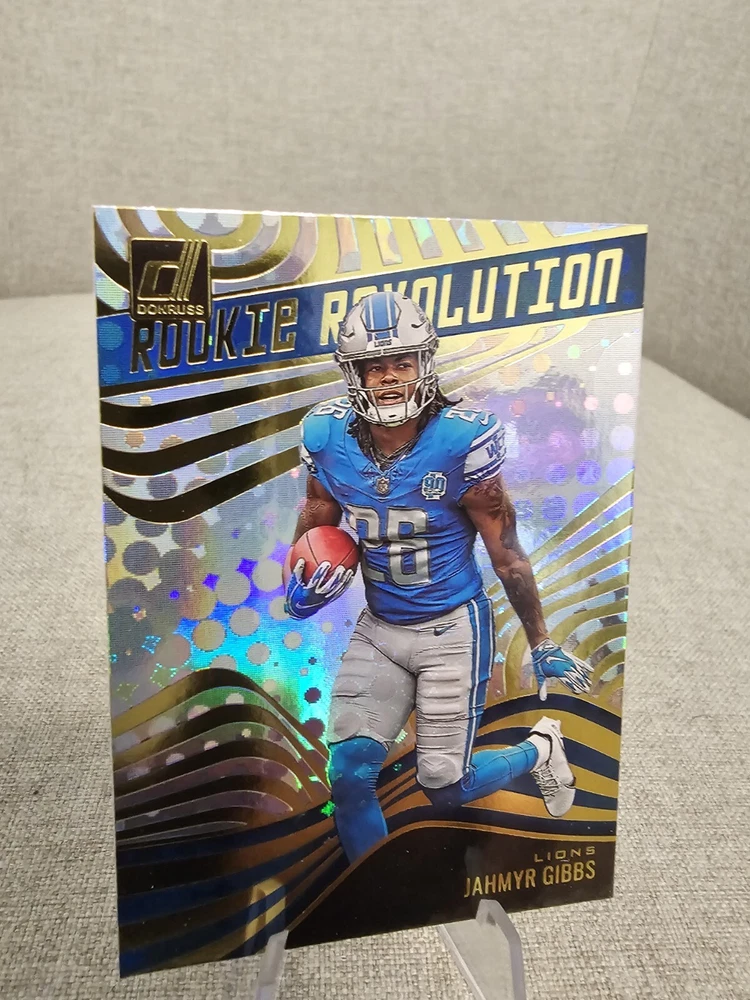 Jahmyr Gibbs 2023 Donruss Rookie Revolution Lions. Condition is Ungraded. Shipped with USPS Ground Advantage.