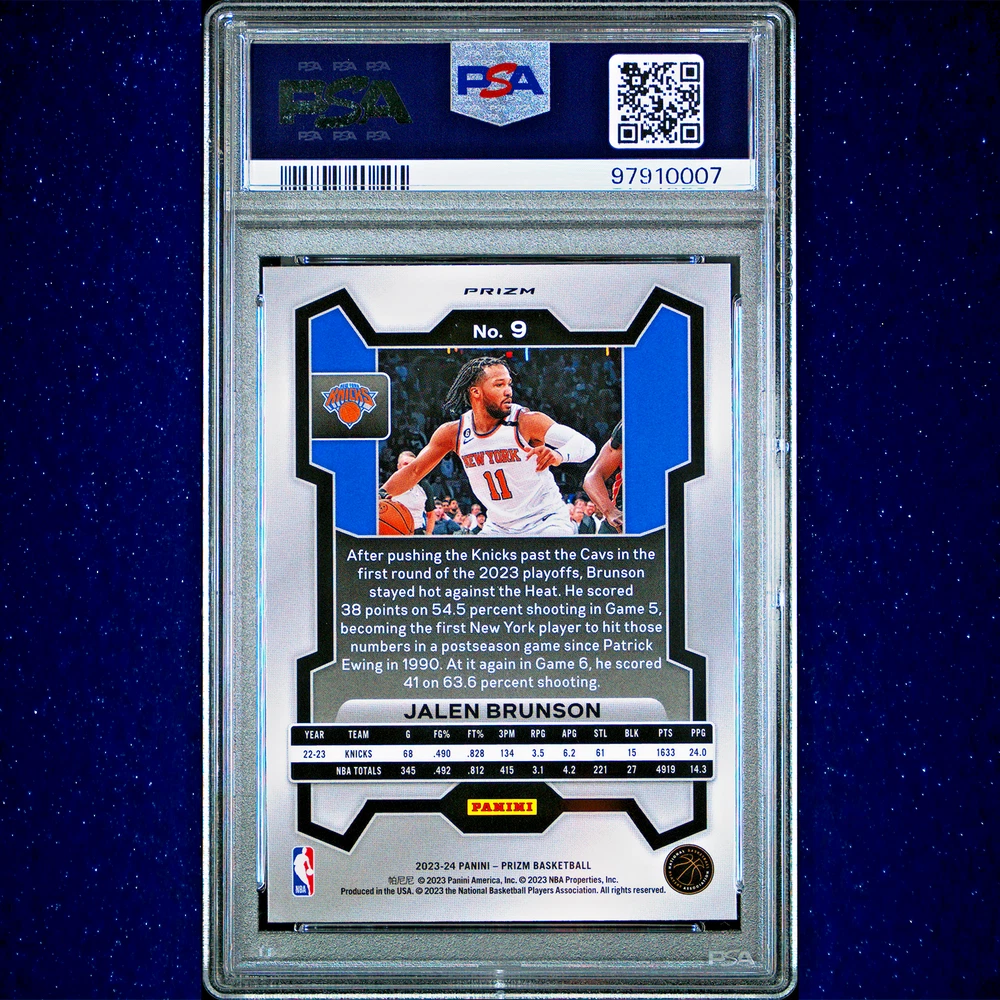 Jalen Brunson 2023 Panini Prizm #9 Orange Ice PSA 10 All orders ship within 24 hours of payment. For Graded Cards you will receive the card(s) listed in the title and pictured in the scan, because at times we may have duplicates of the exact same grade card, you will receive the exact card and grade listed but certification number might be different. Graded cards will be put in a graded sleeve, wrapped in cardboard, and shipped in bubble mailer to ensure it arrives in pristine condition. For Ungraded Single Cards you will receive the exact card(s) listed in the title and pictured. Ungraded Single cards over $20 will be shipped the same way as graded cards Ungraded Single cards under $20 will be shipped in a toploader and team bag using eBay standard envelope, if you would prefer to have it shipped with more protection in bubble mailer, please send us a message and we can provide an updated shipping quote for you. RETURN POLICY : We allow returns with full refunds but do not offer partial refunds. Returns are available to our customers if they did not get the item they are intended to receive. They are not for them to buy and decide they do not want them. 1. Items returned because of damage, missing parts, wrong item sent, will be given full refunds 2. Items returned because of buyers remorse, changed my mind, found better price, just didn't like it will by charged a minimum of 20% restocking fee SALES TAX : Sales tax is charged in accordance w/all of eBay's policies and the state where the item is being sent. ADDITIONAL INFORMATION : We are actively accepting ebay consignments, please message us for any inquiries. THANKS FOR LOOKING AND PLEASE MESSAGE US WITH ANY QUESTIONS! Check out our other eBay listings by clicking this link: TopShop828 eBay Store !