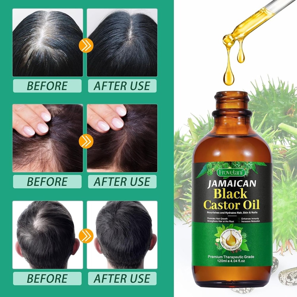 Jamaican Black Castor Oil, Organic Castor Oil for Hair Growth, Cold Press Unrefined, Thicker Eyelashes and Eyebrows, Massage Oil for Aromatherapy 60ML/2 fl oz (PACK OF 1) ORGANIC CASTOR OIL - Our Organic Cold Pressed Castor Oil Made Of Pure, Natural, and Organic Ingredients, riches in omegas and fatty acids that condition roots and nourish hair follicles for healthier, stronger and fuller looking hair, lashes and brows, it's the key vitamins and nutrients to hair growth. STIMULATE HAIR GROWTH: Our jamaican black castor oil hydrating for hair & skin. It's an all-natural way to thicken & strengthen hair to reduce hair loss & hair growth, Organic castor oil is a natural essential oil for dry brittle hair, dry scalps, and dandruff. HYDRATE & SOOTHE DRY SCALP: Our Organic castor oil rich blend of over multiple essential oils, Massage Organic Castor Oil onto dry areas of the skin and scalp to restore moisture and softness, combat dandruff while working to strengthen, lengthen, nourish, and protect hair. FOR BEST RESULTS: Warm a quarter sized amount of our Organic Castor Oil into the palms of your hands and spread evenly all over scalp. Comb through from roots to ends. Leave in overnight or at least 1 hour, then wash out with shampoo to reveal deeply-hydrated, luscious-looking hair. WIDELY APPLICATION: This all natural formula jamaican black castor oil is good for eyebrow, nails, hair, skin and massage, hydrates more than just your hair and scalp, Also for skin makes a nourishing, skin-softening moisturizer for face and body, suitable for all skin type, perfect for massage therapy as well as. Note: This Product is designed to deliver optimal results, offering high-quality performance and satisfaction. Please note that individual experiences and outcomes may vary based on personal use, preferences, and unique circumstances. For best results, we recommend following the provided guidelines and ensuring the product is used as intended. Product result may vary for every individual.