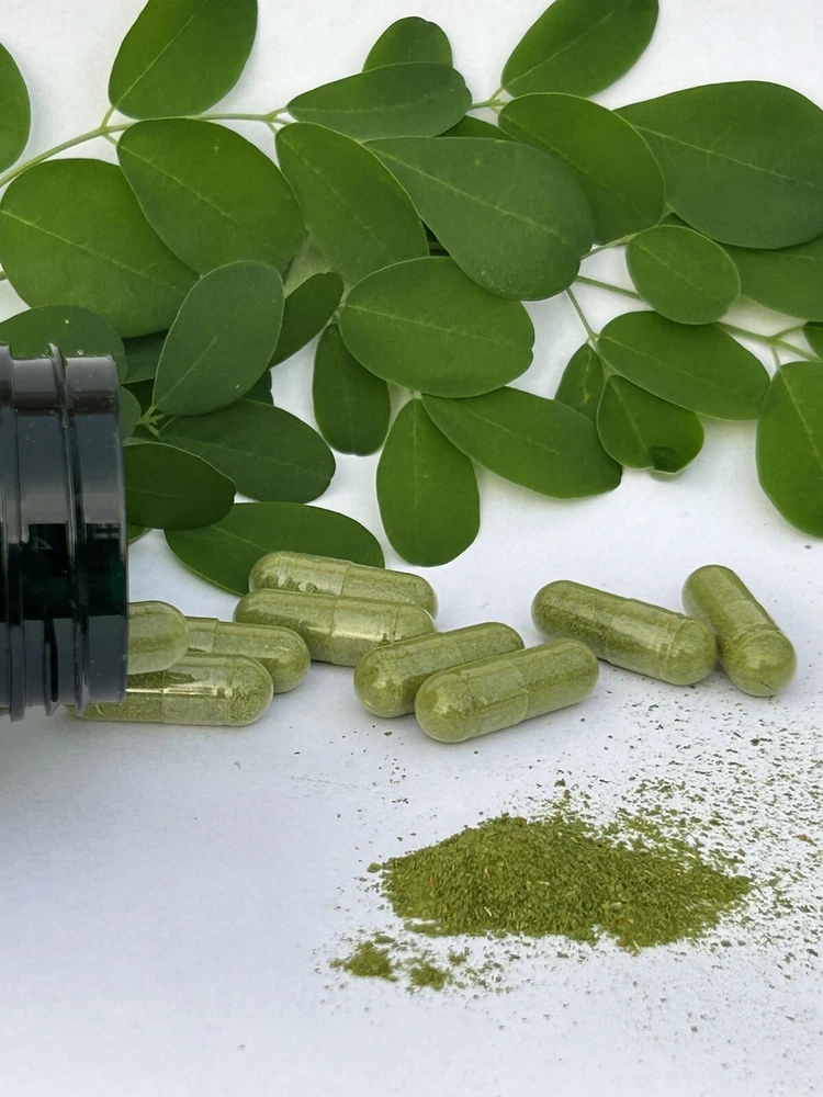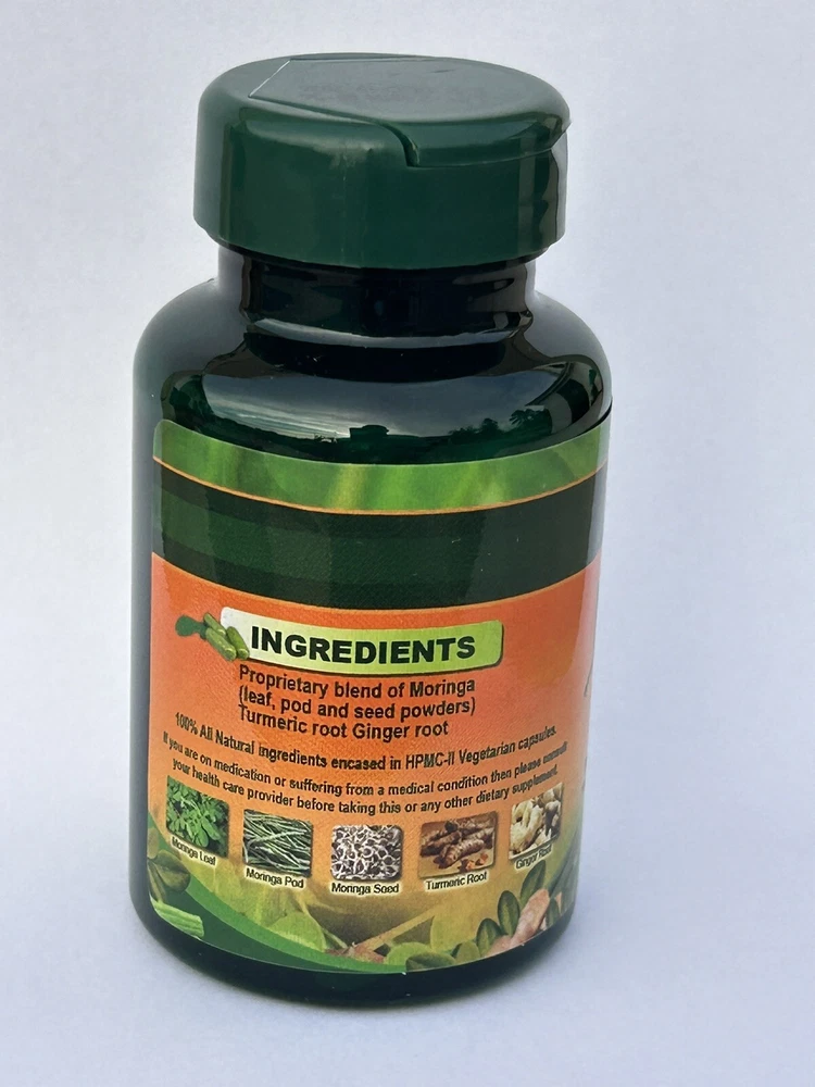 Drumstick Tree (Moringa oleifera), Moringa Leaf, Pod and Seed Powders. Ginger and Turmeric