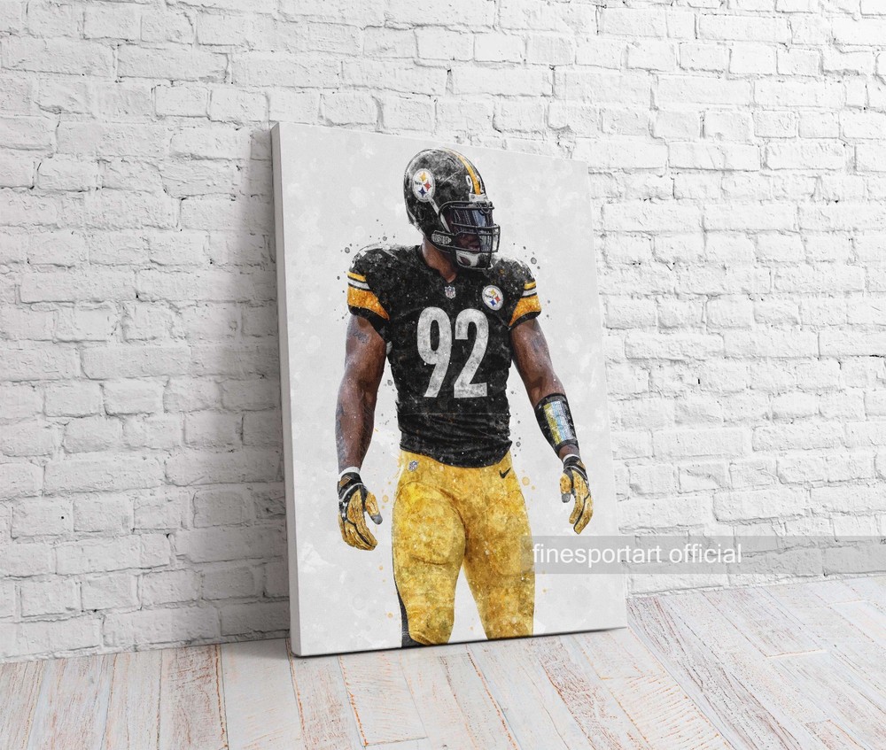 James Harrison poster in Pittsburgh Steelers uniform? Yes! We have the best selection of sports posters, canvas prints and wall art for sale. This print will be a great gift for any football fan. QUALITY : *Premium Posters - Museum-quality poster made on thick and long-lasting matte paper. - Paper weight: 200 gsm / 80 lb - Professionally Printed on Epson EP Premium. - Shipped in sturdy packaging protecting the poster. *Canvas Stretched - Cotton canvas composite with a special proprietary coating. - Inner frame made with radial pine sourced from renewable forests. - Soft rubber dots on bottom back corners for support. - High image quality and detail. - Back hanging included. SHIPPING INFORMATION: - FREE SHIPPING on all prints. ✉️Please contact me if you have any questions! DISCLAIMER: "My sports prints are created with my own artistic interpretations using a graphic editor. Any brand names, logo or trademarks used herein remain the property of their respective owners. The listing of any company, drawing, quote and/or their logos is not intended to imply any endorsement or direct affiliation with said company."
