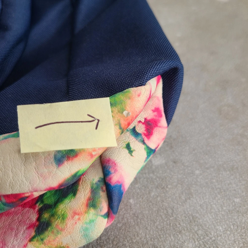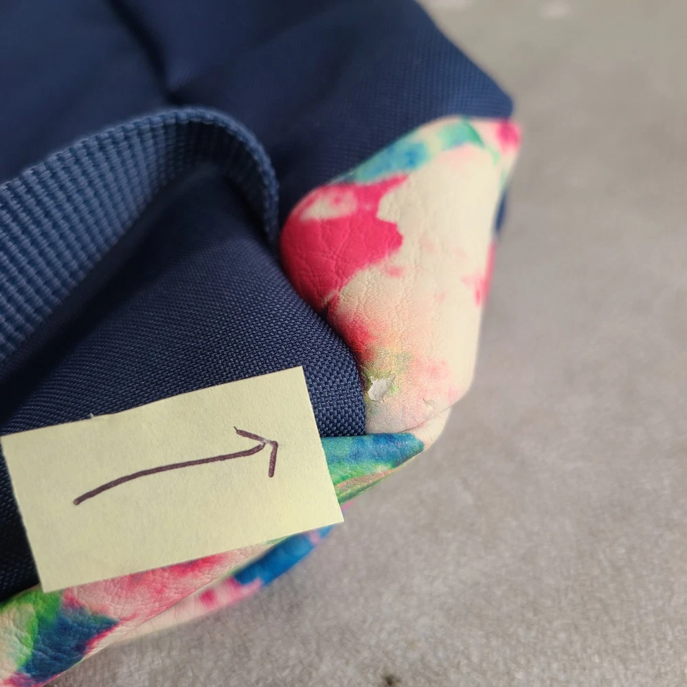 GREAT CONDITION JanSport AUSTIN backpack in Stella Blue with a floral pattern on the bottom. It is a large size backpack made of canvas with faux leather accents on the strap and zipper. The bag features inner and outer pockets, a laptop sleeve, adjustable straps, and the JanSport T71A model. The design is centered around a flower theme, making it a stylish choice for girls. With few flaws