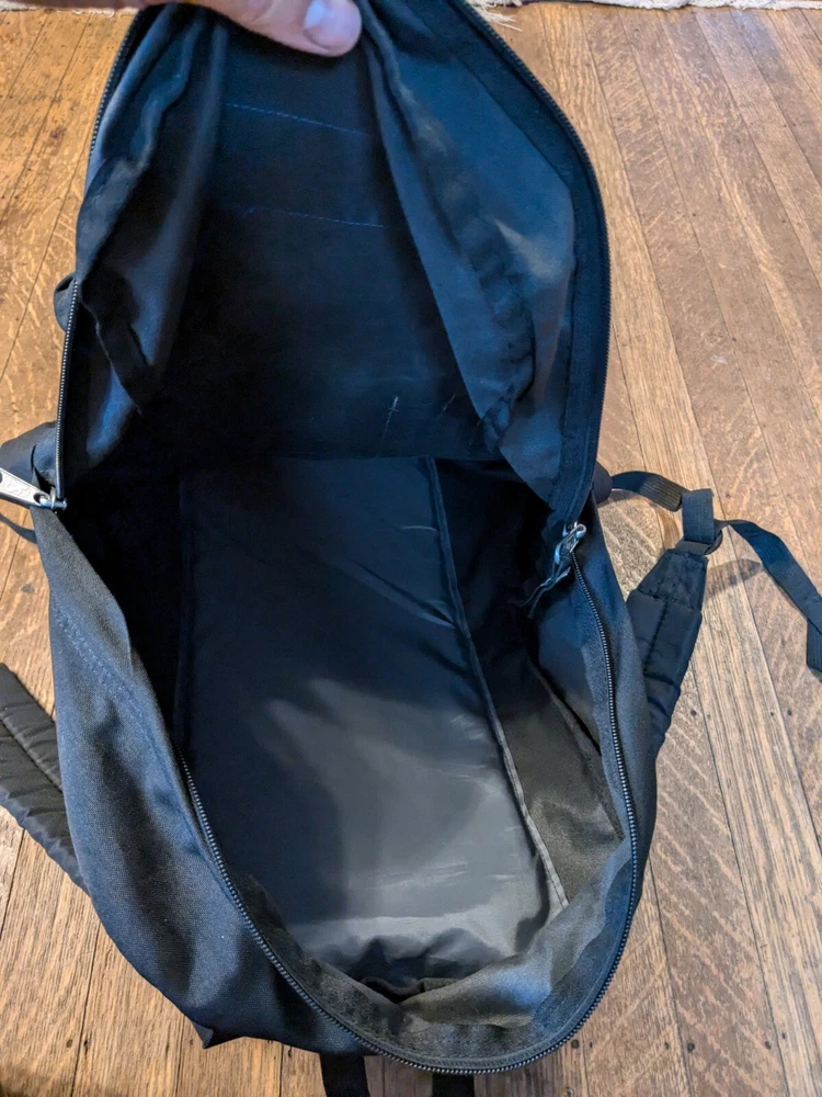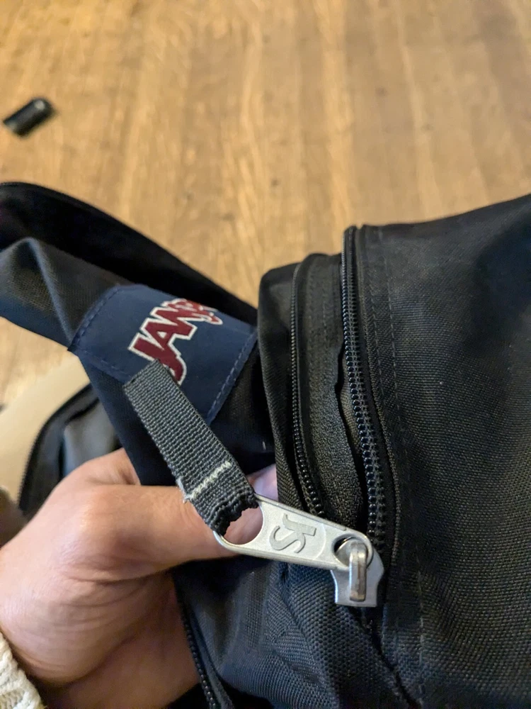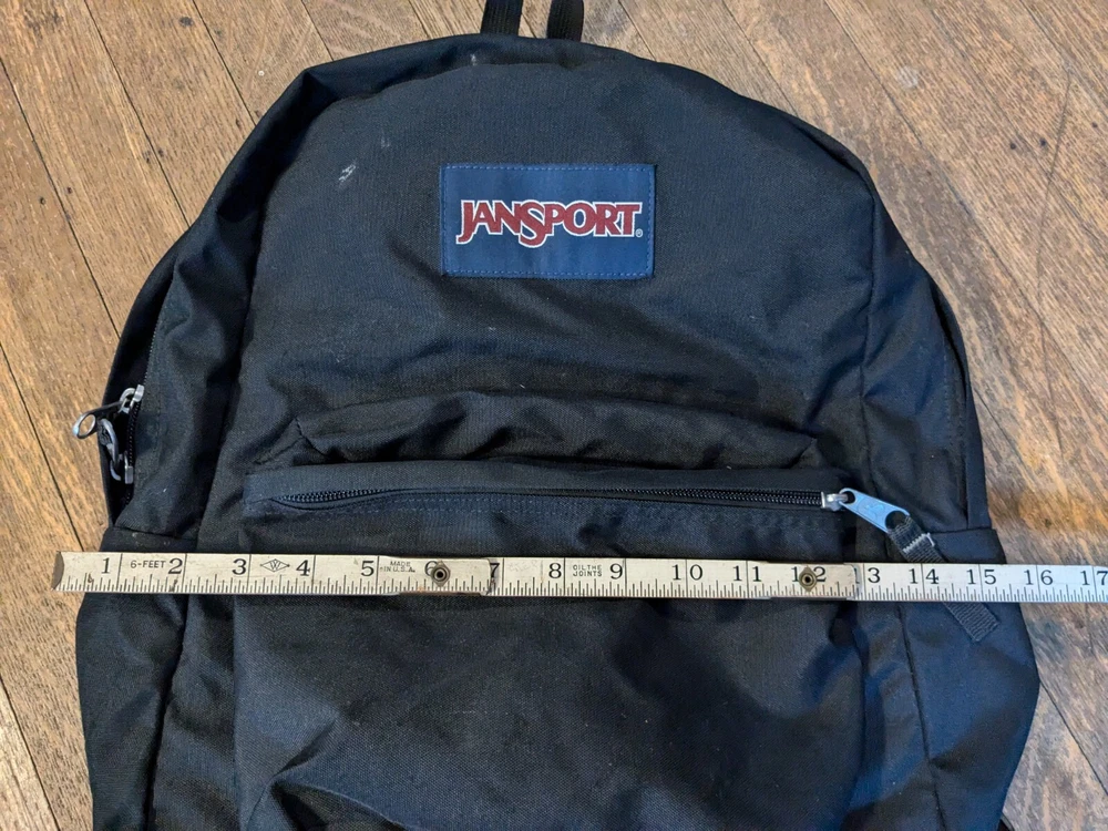 This is in good condition. It does need to be cleaned up a little bit. Perhaps it can be thrown through the washer even. Please ask if you have any questions. I have the measurements and the photos as well. This JanSport backpack is a medium-sized, solid navy blue with black accents. It features a zip closure and adjustable straps, making it perfect for travel or casual use. The backpack is made of durable polyester canvas material and has a fabric lining. It's a great choice for anyone needing a reliable and stylish school backpack. The unisex design makes it suitable for both men and women. The JanSport brand is known for its quality and this backpack lives up to that standard. Made in the United States, it's a practical and fashionable choice for anyone looking for a reliable backpack.