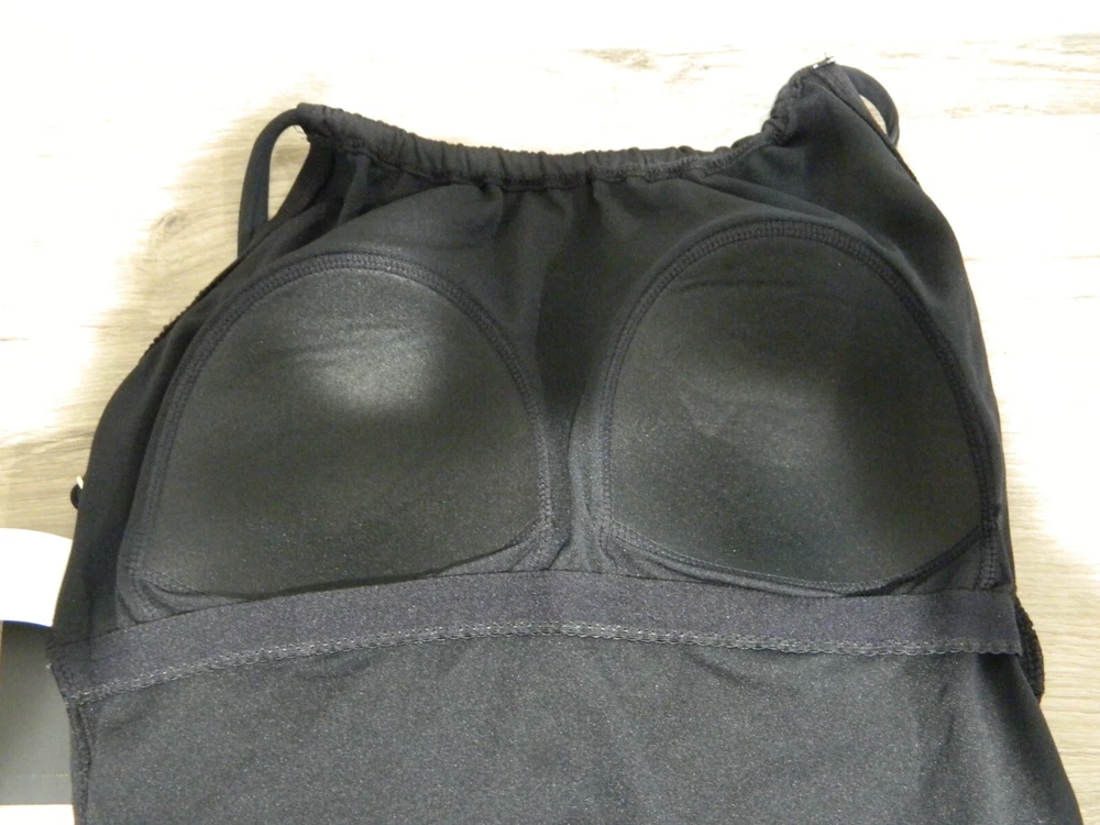NEW WITH TAGS Retail $85 Solid Black HIGH NECKLINE ADJUSTABLE STRAPS ELASTIC SHELF BRA SUPPORT SOFT NON-REMOVABLE PADDING NO UNDERWIRE Should fit a D-Cup (my best guess) LINED MODERATE COVERAGE AT REAR Hygienic Liner 92% POLYAMIDE 8% ELASTANE