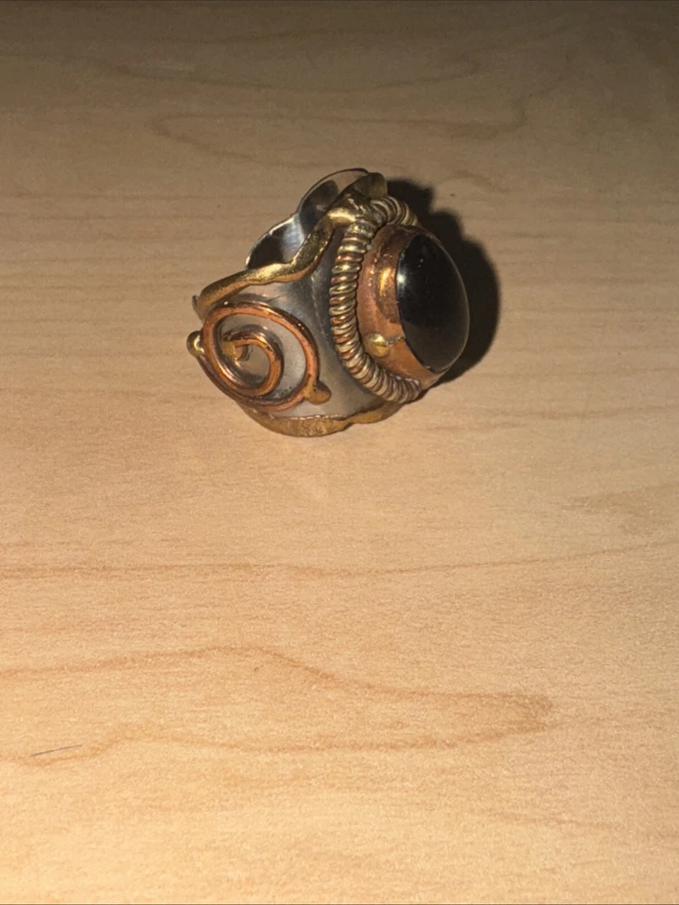 Add a touch of elegance to your style with this stunning Janya Black Onyx Silver plated brass Cuff Ring from India. This adjustable ring is crafted with high-quality materials that ensure durability and long-lasting use. The beautiful black onyx stone adds a touch of glamour to any outfit, making it perfect for both casual and formal events. The silver-plated brass cuff ring features a unique design that is sure to catch the eye of anyone who sees it. Made in India, this ring is a true work of art that combines traditional and modern elements. The adjustable feature ensures that the ring fits comfortably on your finger, making it an ideal accessory for any occasion.