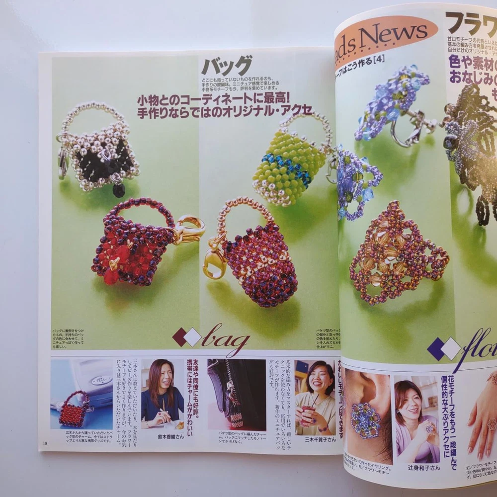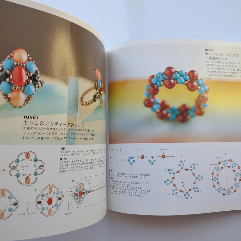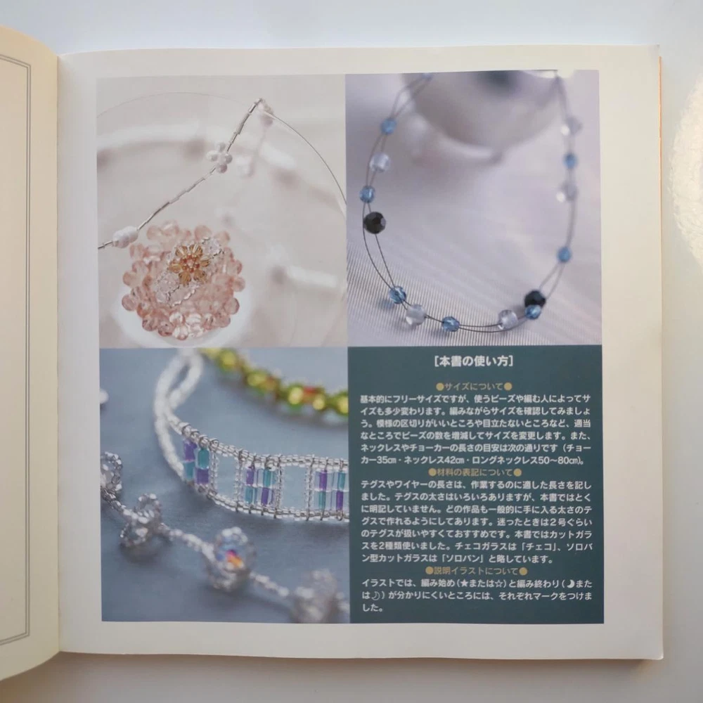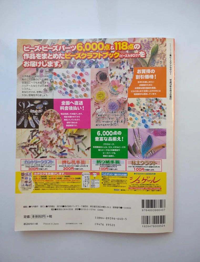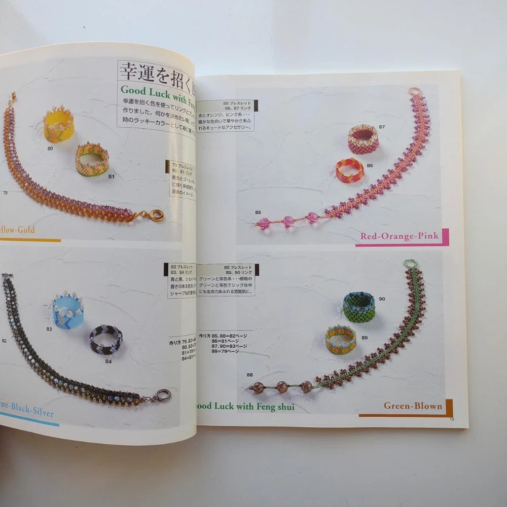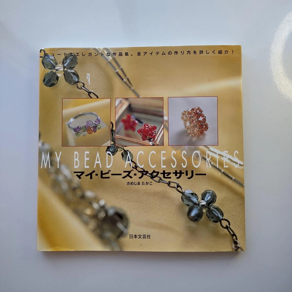Hello and welcome! You are viewing a variety of used Japanese craft books. Please refer to each book for details. Victorian Style Beads Jewelry Author: Mika Tsuamoto Pages: 90 Year: 2002 Condition: Good Simple but inspirational Victorian style jewelry includes necklaces, rings and earrings. Friendship Bracelet Author: My Birthday Magazine Pages: 58 Year: 1993 Condition: Fair Lean how to weave different motif floss friendship bracelets. Some aging and stains but no torn pages. Princess Beads Author: Takako Samejima Pages: 84 Year: 2002 Condition: Good Easy and chic bead weaving jewelry projects include choker necklaces, rings, bracelets, earrings and hair accessories. My Bead Accessories Author: Takako Samejima Pages: 82 Year: 1999 Condition: Good Simple and beautiful jewelry projects include necklaces, rings, bracelets, earrings, head bands and mini bags. Motif Beads Author: Keiko Kitamura Pages: 96 Year: 2004 Condition: Good Make adorable animal charms with Swarovski beads! Instructional diagrams include how to arrange them to key chains and charms. Honey Beads Author: Noriko Hazama & Kiyoka Hino Pages: 96 Year: 2002 Condition: Good Relatively simple projects, many with matching sets or variation arrangements include necklaces, rings, bracelets, earrings and pins. Class Bead Accessories Author: Takako Samejima Pages: 84 Year: 2003 Condition: Good Basic and arranged motif beaded jewelry projects including necklaces, rings, bracelets and earrings. Lovely colors. Bead News Pages: 98 Year: 2001 Condition: Good A fashion magazine with focus on handmade bead jewelry, Many photos of variety of beaded jewelry but not really an instructional literature. Some tips and basics with diagrams. Beads Chic Author: Matsuko Sawanobori Pages: 80 Year: 2001 Condition: Good Easy and chic bead weaving jewelry projects include choker necklaces, rings, bracelets, earrings and hair accessories. Bead Weaving Accessories Author: Tamura Hitomi Pages: 88 Year: 2004 Condition: Good Mainly peyote stitched projects include necklaces, rings, bracelets and earrings. Beads Accessory Pages: 82 Year: 2002 Condition: Good Beautiful and inspirational projects include necklaces, rings, bracelets, earrings, charms, hair accessory and brooches. Fast free shipping within U.S.! Ships from Arizona.