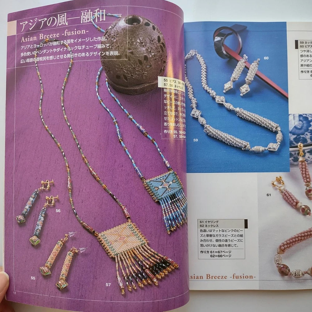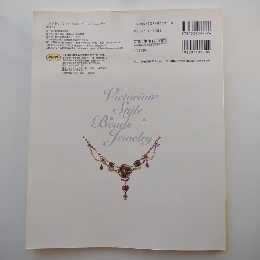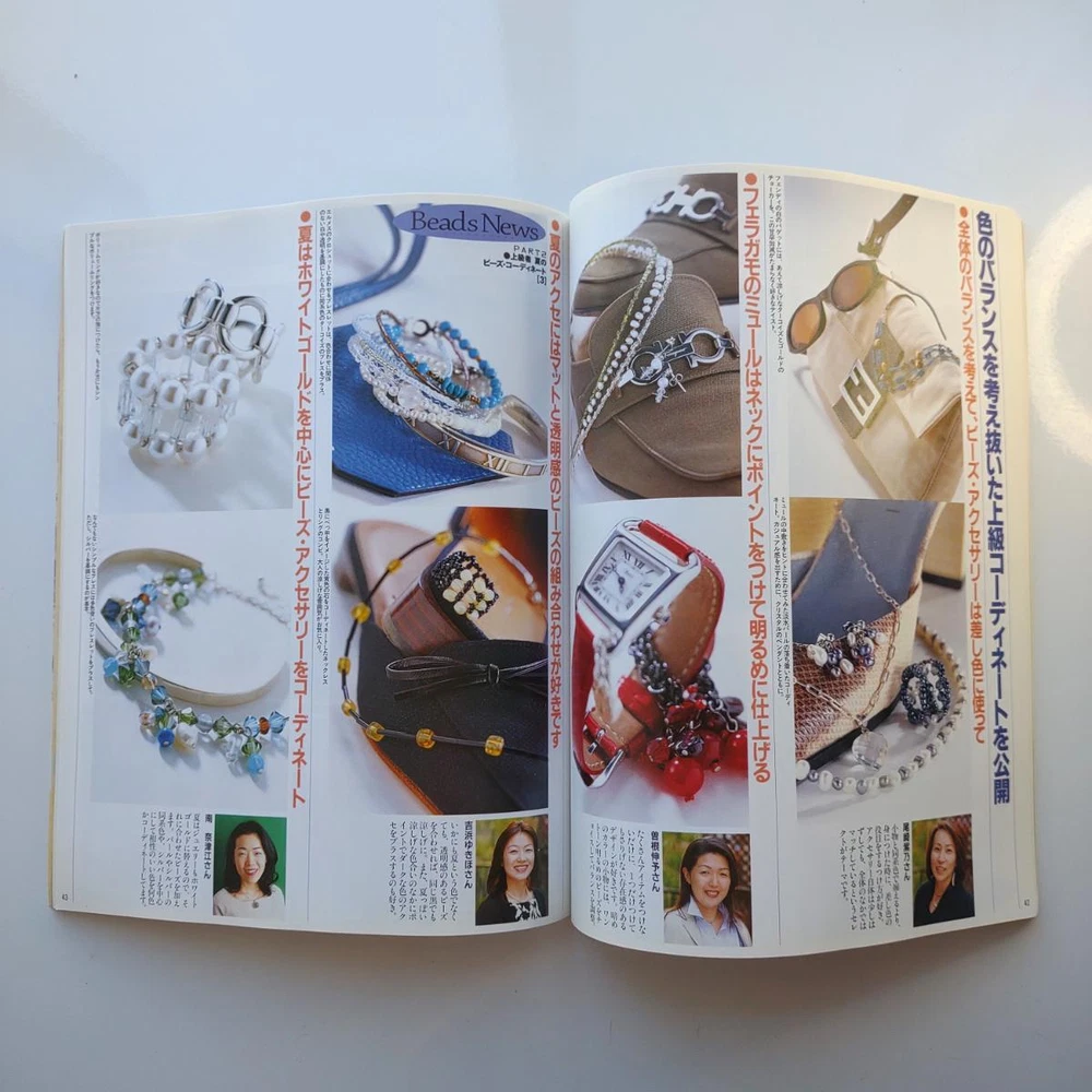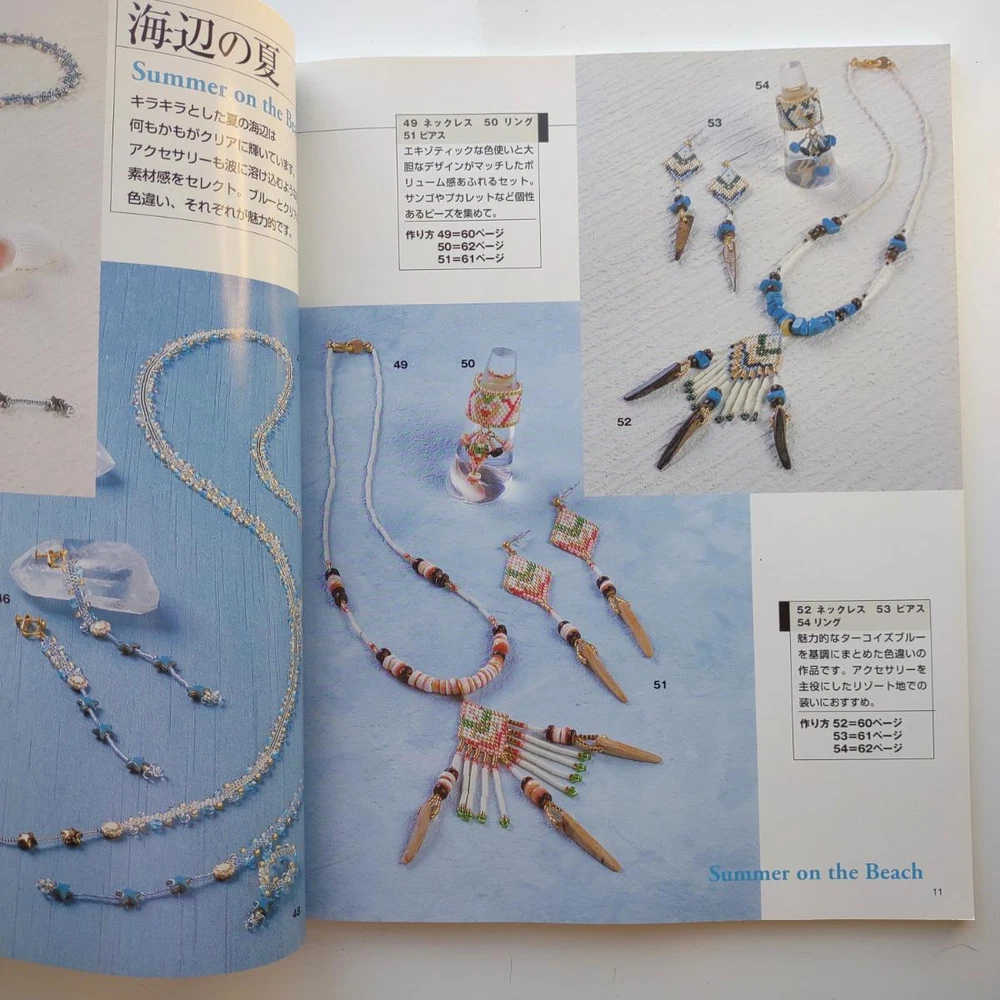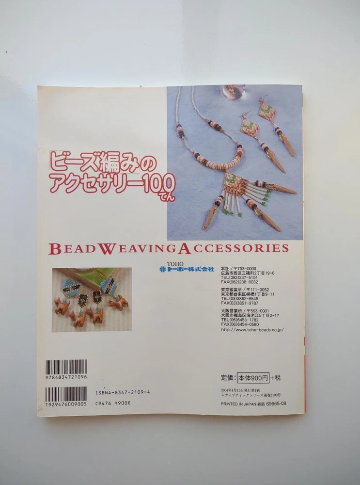 Hello and welcome! You are viewing a variety of used Japanese craft books. Please refer to each book for details. Victorian Style Beads Jewelry Author: Mika Tsuamoto Pages: 90 Year: 2002 Condition: Good Simple but inspirational Victorian style jewelry includes necklaces, rings and earrings. Friendship Bracelet Author: My Birthday Magazine Pages: 58 Year: 1993 Condition: Fair Lean how to weave different motif floss friendship bracelets. Some aging and stains but no torn pages. Princess Beads Author: Takako Samejima Pages: 84 Year: 2002 Condition: Good Easy and chic bead weaving jewelry projects include choker necklaces, rings, bracelets, earrings and hair accessories. My Bead Accessories Author: Takako Samejima Pages: 82 Year: 1999 Condition: Good Simple and beautiful jewelry projects include necklaces, rings, bracelets, earrings, head bands and mini bags. Motif Beads Author: Keiko Kitamura Pages: 96 Year: 2004 Condition: Good Make adorable animal charms with Swarovski beads! Instructional diagrams include how to arrange them to key chains and charms. Honey Beads Author: Noriko Hazama & Kiyoka Hino Pages: 96 Year: 2002 Condition: Good Relatively simple projects, many with matching sets or variation arrangements include necklaces, rings, bracelets, earrings and pins. Class Bead Accessories Author: Takako Samejima Pages: 84 Year: 2003 Condition: Good Basic and arranged motif beaded jewelry projects including necklaces, rings, bracelets and earrings. Lovely colors. Bead News Pages: 98 Year: 2001 Condition: Good A fashion magazine with focus on handmade bead jewelry, Many photos of variety of beaded jewelry but not really an instructional literature. Some tips and basics with diagrams. Beads Chic Author: Matsuko Sawanobori Pages: 80 Year: 2001 Condition: Good Easy and chic bead weaving jewelry projects include choker necklaces, rings, bracelets, earrings and hair accessories. Bead Weaving Accessories Author: Tamura Hitomi Pages: 88 Year: 2004 Condition: Good Mainly peyote stitched projects include necklaces, rings, bracelets and earrings. Beads Accessory Pages: 82 Year: 2002 Condition: Good Beautiful and inspirational projects include necklaces, rings, bracelets, earrings, charms, hair accessory and brooches. Fast free shipping within U.S.! Ships from Arizona.