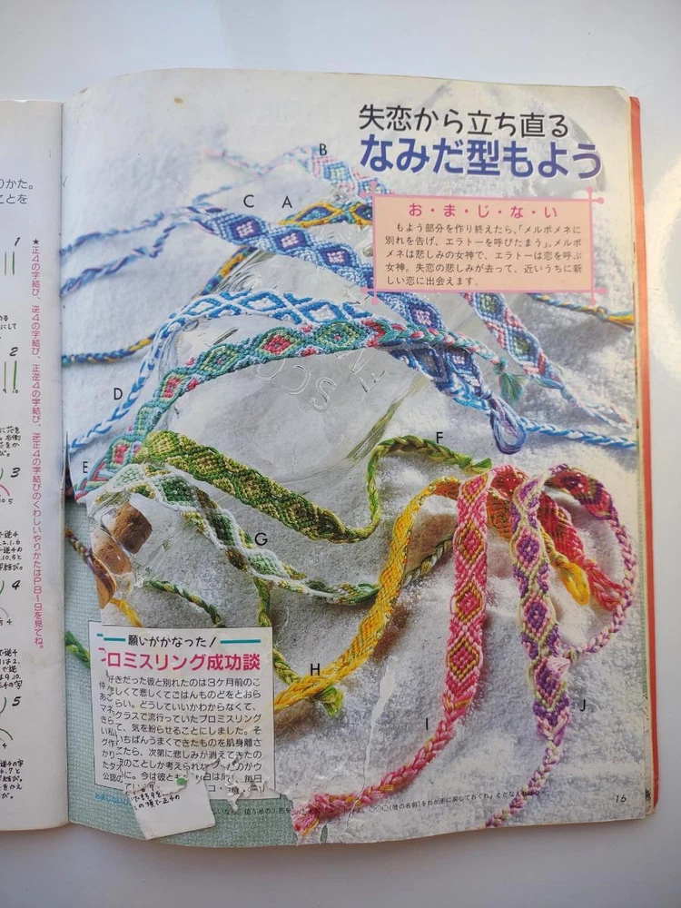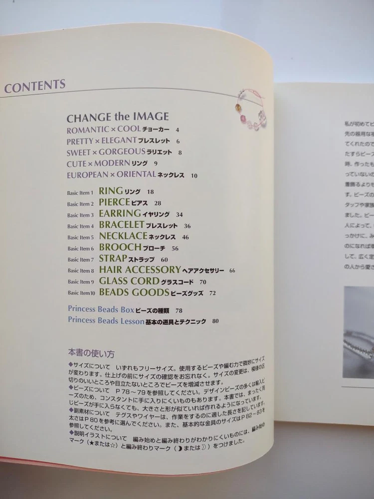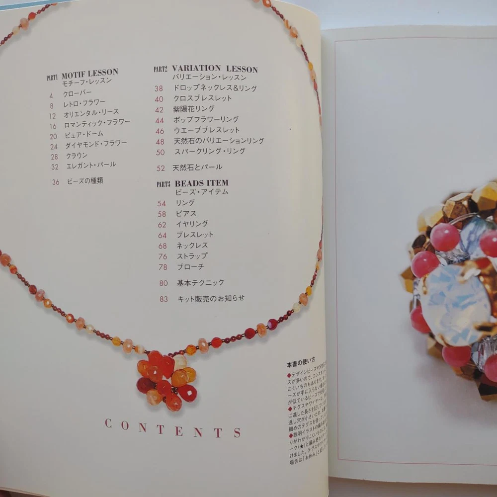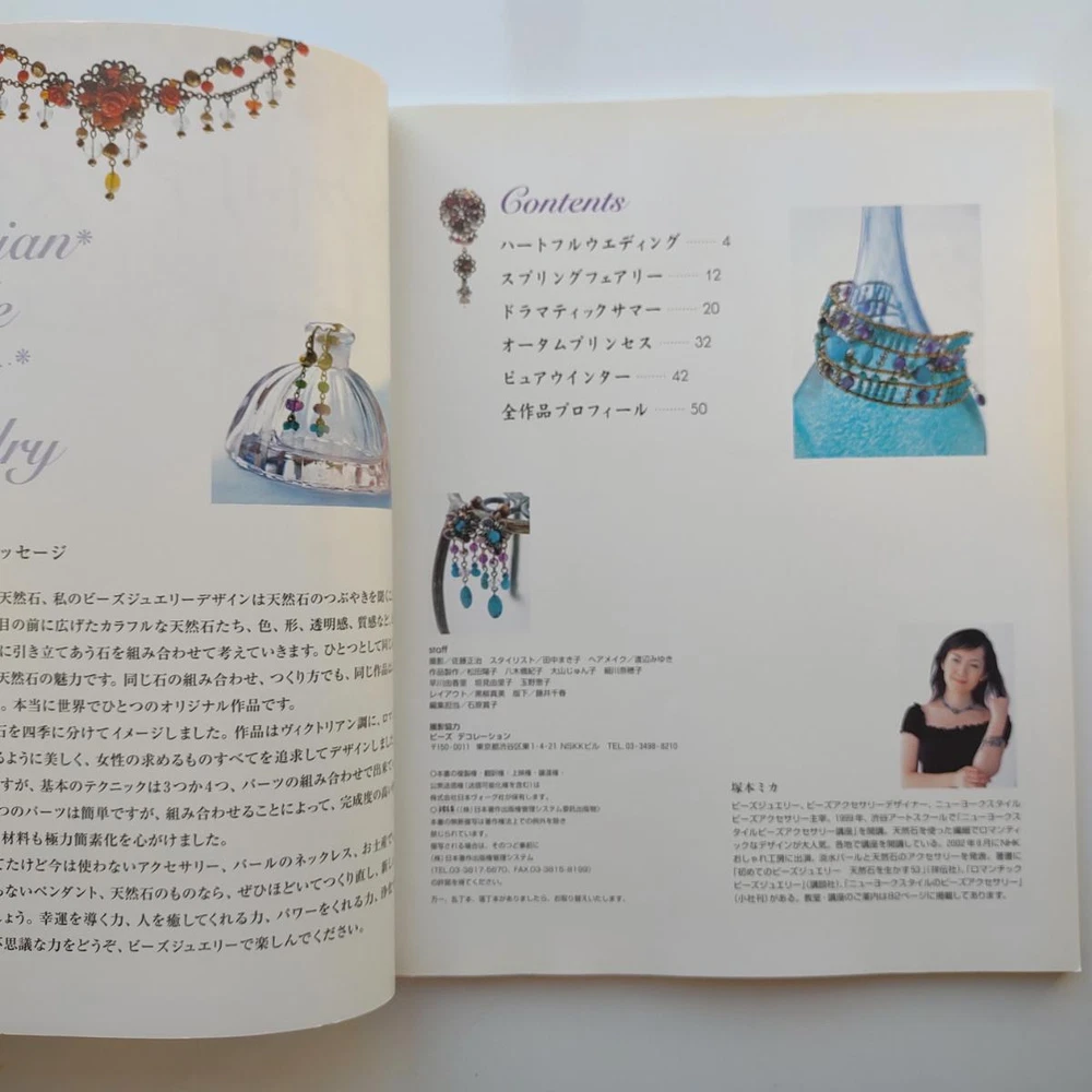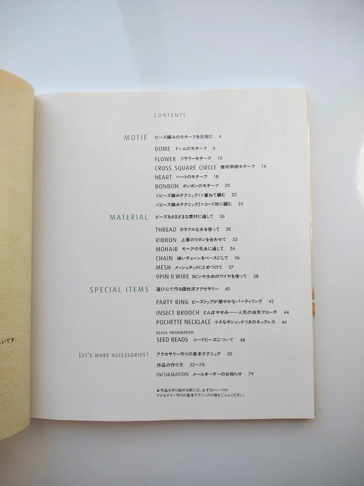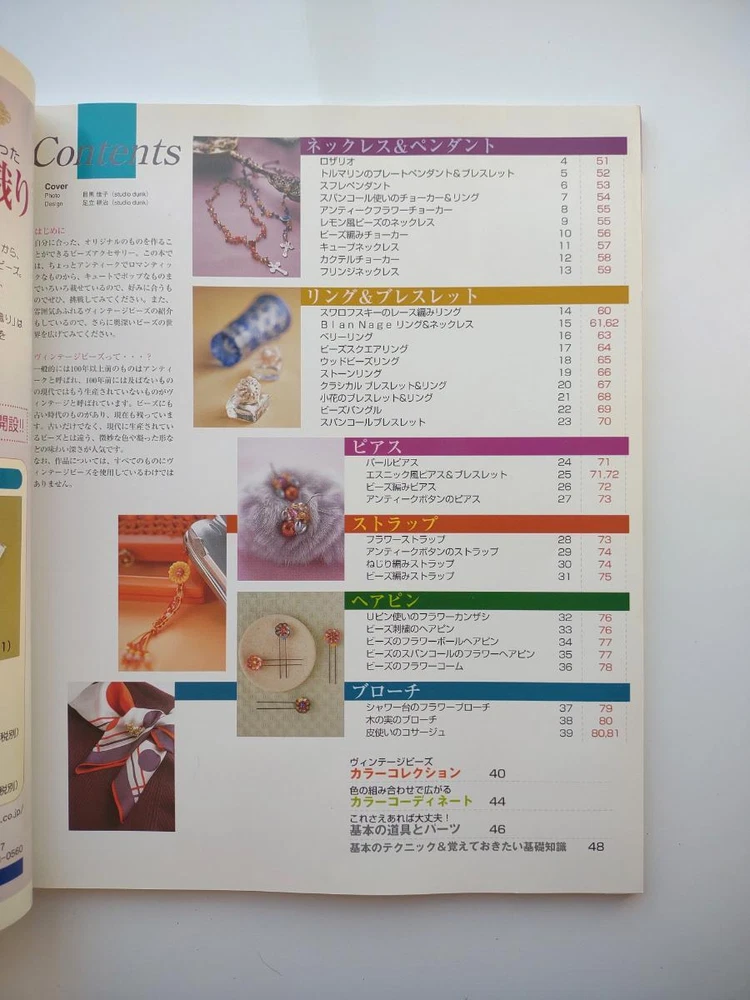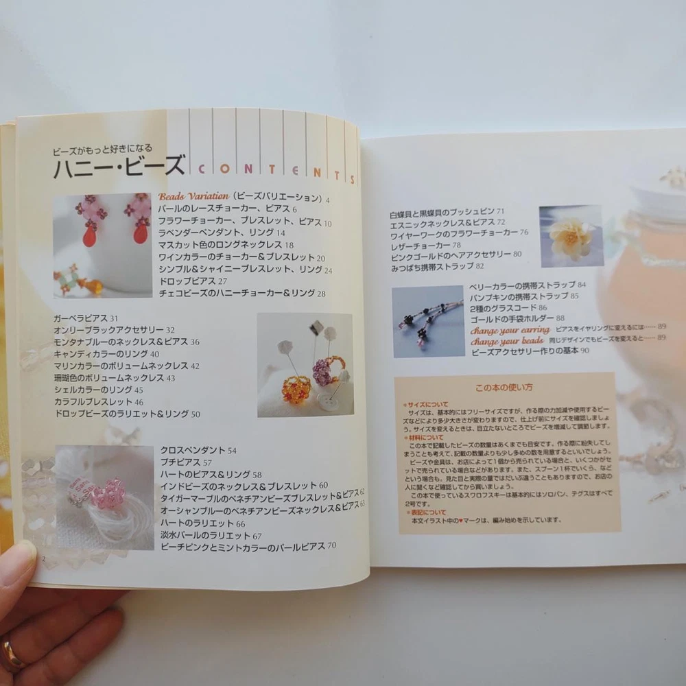 Hello and welcome! You are viewing a variety of used Japanese craft books. Please refer to each book for details. Victorian Style Beads Jewelry Author: Mika Tsuamoto Pages: 90 Year: 2002 Condition: Good Simple but inspirational Victorian style jewelry includes necklaces, rings and earrings. Friendship Bracelet Author: My Birthday Magazine Pages: 58 Year: 1993 Condition: Fair Lean how to weave different motif floss friendship bracelets. Some aging and stains but no torn pages. Princess Beads Author: Takako Samejima Pages: 84 Year: 2002 Condition: Good Easy and chic bead weaving jewelry projects include choker necklaces, rings, bracelets, earrings and hair accessories. My Bead Accessories Author: Takako Samejima Pages: 82 Year: 1999 Condition: Good Simple and beautiful jewelry projects include necklaces, rings, bracelets, earrings, head bands and mini bags. Motif Beads Author: Keiko Kitamura Pages: 96 Year: 2004 Condition: Good Make adorable animal charms with Swarovski beads! Instructional diagrams include how to arrange them to key chains and charms. Honey Beads Author: Noriko Hazama & Kiyoka Hino Pages: 96 Year: 2002 Condition: Good Relatively simple projects, many with matching sets or variation arrangements include necklaces, rings, bracelets, earrings and pins. Class Bead Accessories Author: Takako Samejima Pages: 84 Year: 2003 Condition: Good Basic and arranged motif beaded jewelry projects including necklaces, rings, bracelets and earrings. Lovely colors. Bead News Pages: 98 Year: 2001 Condition: Good A fashion magazine with focus on handmade bead jewelry, Many photos of variety of beaded jewelry but not really an instructional literature. Some tips and basics with diagrams. Beads Chic Author: Matsuko Sawanobori Pages: 80 Year: 2001 Condition: Good Easy and chic bead weaving jewelry projects include choker necklaces, rings, bracelets, earrings and hair accessories. Bead Weaving Accessories Author: Tamura Hitomi Pages: 88 Year: 2004 Condition: Good Mainly peyote stitched projects include necklaces, rings, bracelets and earrings. Beads Accessory Pages: 82 Year: 2002 Condition: Good Beautiful and inspirational projects include necklaces, rings, bracelets, earrings, charms, hair accessory and brooches. Fast free shipping within U.S.! Ships from Arizona.