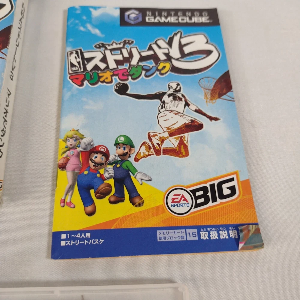 Japanese version Dunk in NBA Street V3 for Nintendo GameCube. Comes with slip cover, case, manual, and game disc. There is some wear on the slip cover as shown in the photos. There may be some light scratches on the disc, but it has been tested and verified working. Please view all photos to understand condition. GameCube games are region locked, you will need a Japanese GameCube or system compatible with Japanese GameCube games to play this. The game has been tested and verified working on a Japanese GameCube. Originally from Japan, ships from USA.