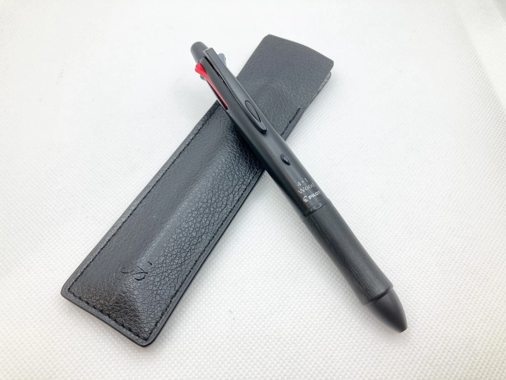Japanese Multi function pen: PILOT, 4+1 Wood, Black, With pen case