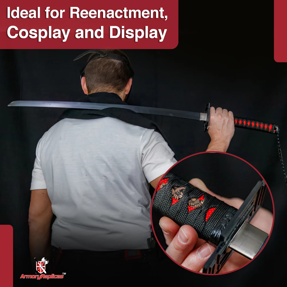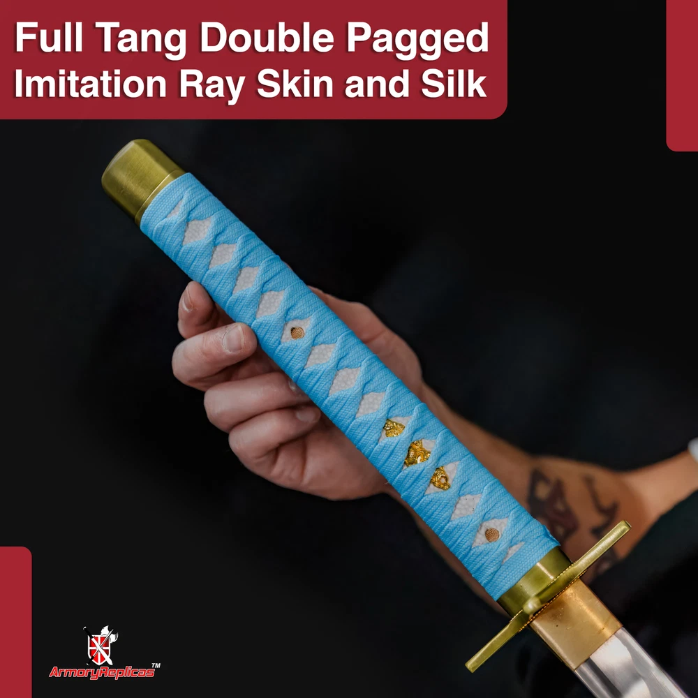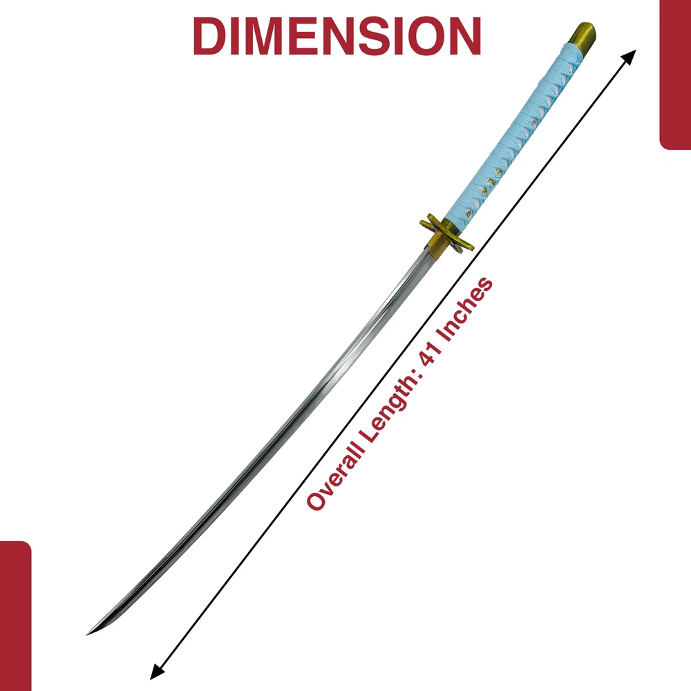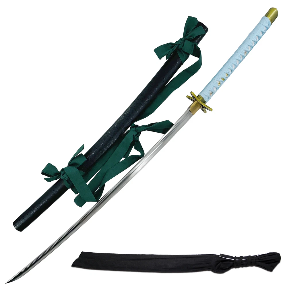 Black Katana With an overall length of 39 INCHES, a handle length of 11.5 INCHES, and a blade length of 27.5 INCHES, this foam katana strikes the ideal balance between authenticity and convenience, making it perfect for cosplay, theatre, and other events. Black Ninja Katana Standing at an overall length of 42.5 inches, with a 31.5-inch blade and a handle length of 11 inches, the sword showcases authentic proportions for a true Japanese Ninja Katana experience. The guard dimensions of 4 x 3 inches and an inner core of 10mm contribute to its realistic feel. Cosplay Katana-Black with Belt The pommel has a black chain decoration that measures, 75 inches long. Case Overall Length: 12.25 Inches, Case Material: Nylon Cosplay Katana-blue Measuring at 39 inches overall, with a handle length of 11.5 inches and a 27.5-inch blade, this foam katana perfectly replicates Hitsugaya's Hyorinmaru. Ideal for LARP, costume parties, cosplay events, theatre performances, and more. Real Katana-Black 68" Dive into the Details with Precision Specifications - an Overall Length of 68 Inches (in Scabbard), a 48-Inch Blade, and a 1.25-Inch Blade Width. The 3mm Thickness Guarantees Strength, While the 16-Inch Handle Adds Balance and Control to This Formidable Katana. Real Katana-Blue 41" Experience the traditional Japanese craftsmanship with a heat-tempered 28.5-inch blade showcasing an authentic Hamon, created using a fast cooling method. The Hi or Blood Groove adds balance and maneuverability. Real Katana-White 38" Measuring at 38 inches overall, with a 26.25-inch carbon steel blade and an 11.75-inch handle, our katana is designed exclusively for decorative and display purposes, featuring a Manji Guard for added aesthetic appeal. Real Katana-White Snow 41" Measuring 41 inches overall with a 26-inch blade, 15-inch handle, and featuring intricate details, this decorative katana is ideal for showcasing your love for anime, making it a must-have for collectors and fans alike. Real Katana-white 40.75" With an overall length of 40.75 inches, a 26-inch blade, and a handle length of 14.75 inches, this replica katana boasts a substantial presence. The 3.75mm blade thickness ensures durability, making it a standout addition for enthusiasts and collectors alike. Real Steel Katana-Black 40" Whether you're a collector or attending conventions, this katana is a must-have. With an overall length of 40 inches and a high-gloss black blade, it's not just a sword ? it's a statement piece that resonates with millennial style. Plus, it comes complete with a hardwood sheath for convenient storage and transport. White Katana With an overall length of 39.25 inches, a handle length of 11.75 inches, and a 27.5-inch blade, our foam katana mirrors the proportions of the anime original, offering a striking visual impact at conventions and gatherings.