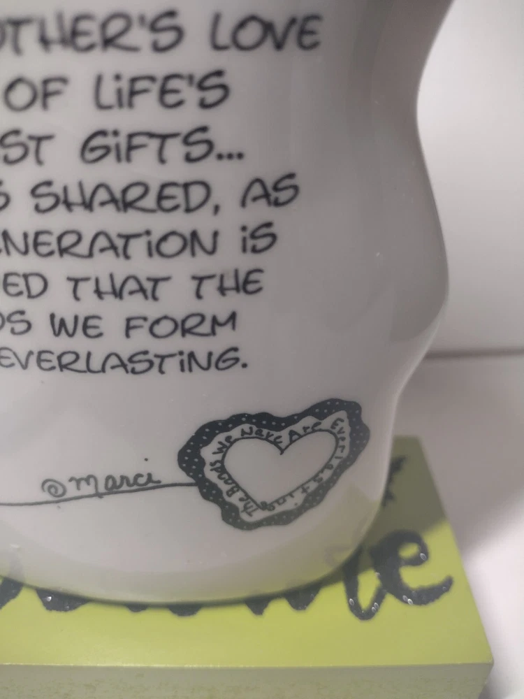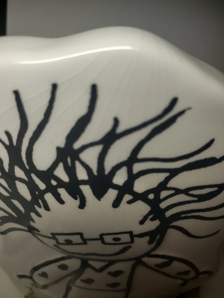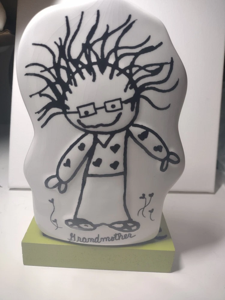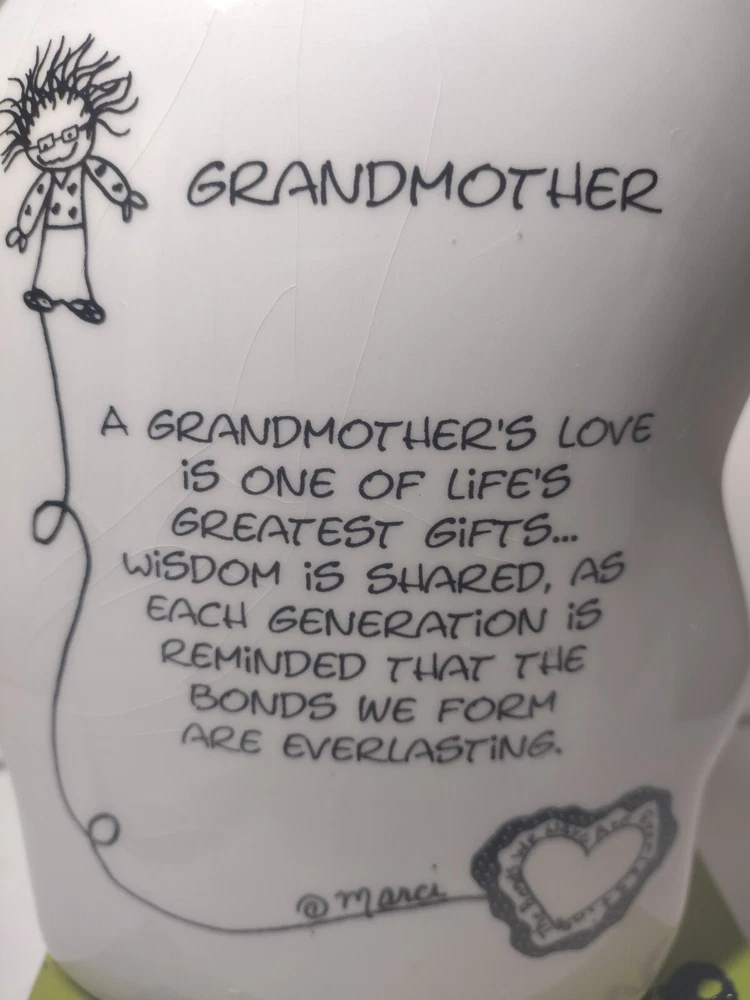 Baum Brothers Marci "Grandmother" Vase/desk top/ planter. Well I love this vase, what came to mind was a place to put my scissors or a plant but I am not a grandmother ha! This vase has crazing unfortunately but it's a great piece. Please review photos as I did try to capture the crazing and conditions. There are no chips or cracks. This is what I would look like as a grandma lol, I am hoping it will go to a good home! Thanks for looking cheers!