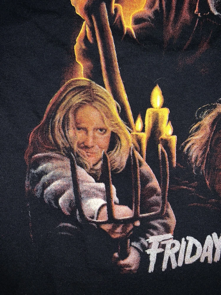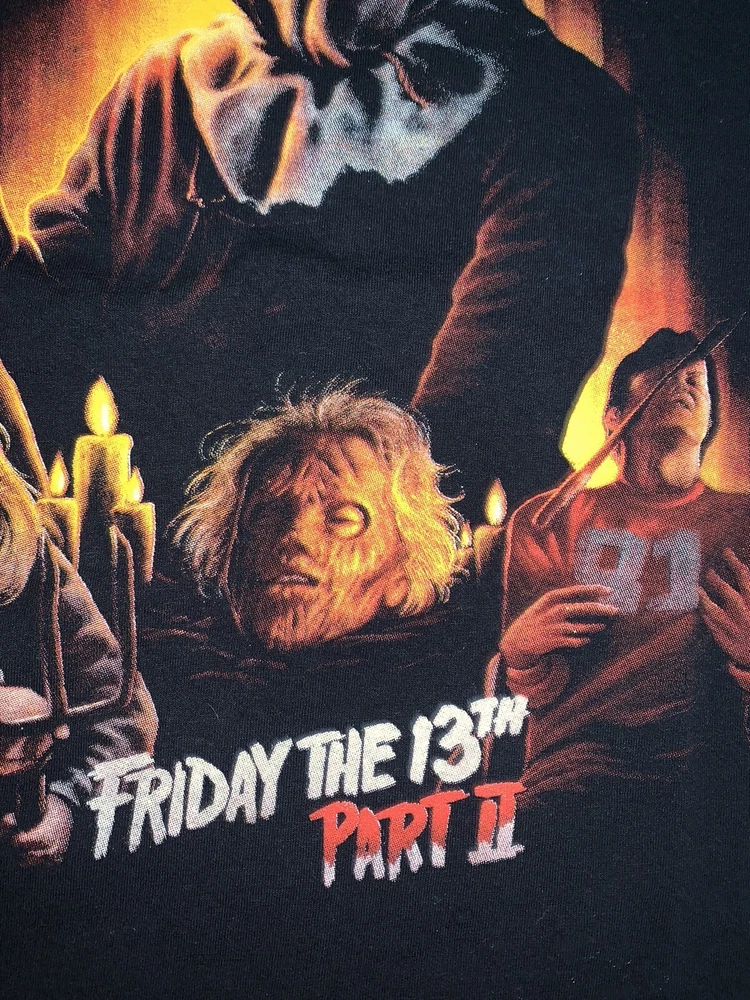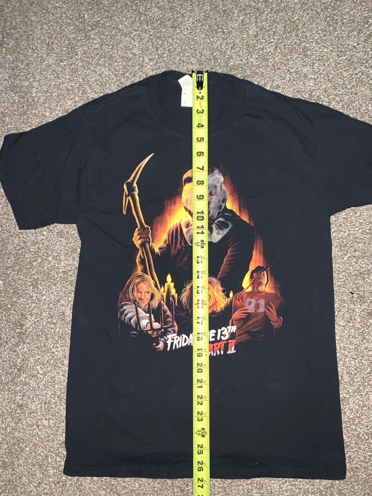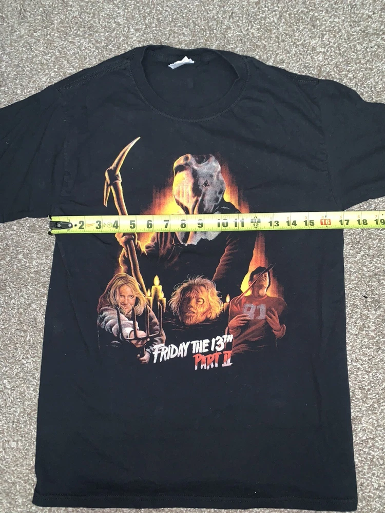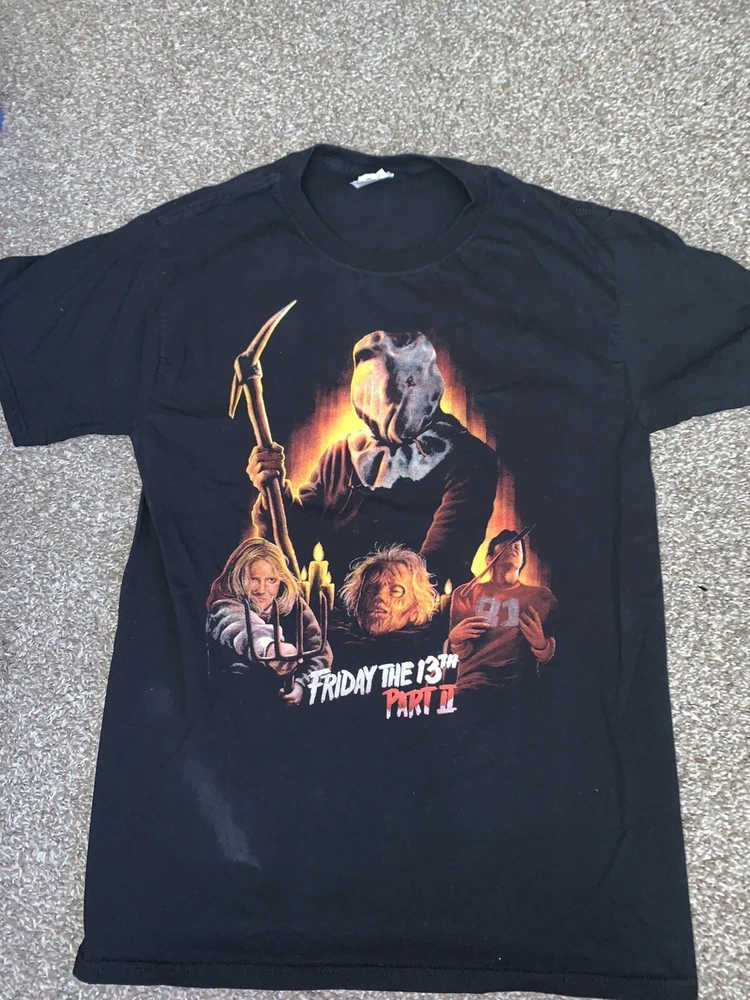 Jason Friday the 13th adult small Horror shirt Rare Baghead Jason shirt. Us part 2 fans are few and far between to find any merch for the movie Shirt is in brand new condition, stored with similar items. I planned on wearing it eventually, but I have an overstock of too many shirts for one lifetime Image pictured on the front, the backside is blank. Color black, size adult XXL Strangely enough, I bought this at the Halloween 40 years of terror convention. Don’t remember the vendor though.