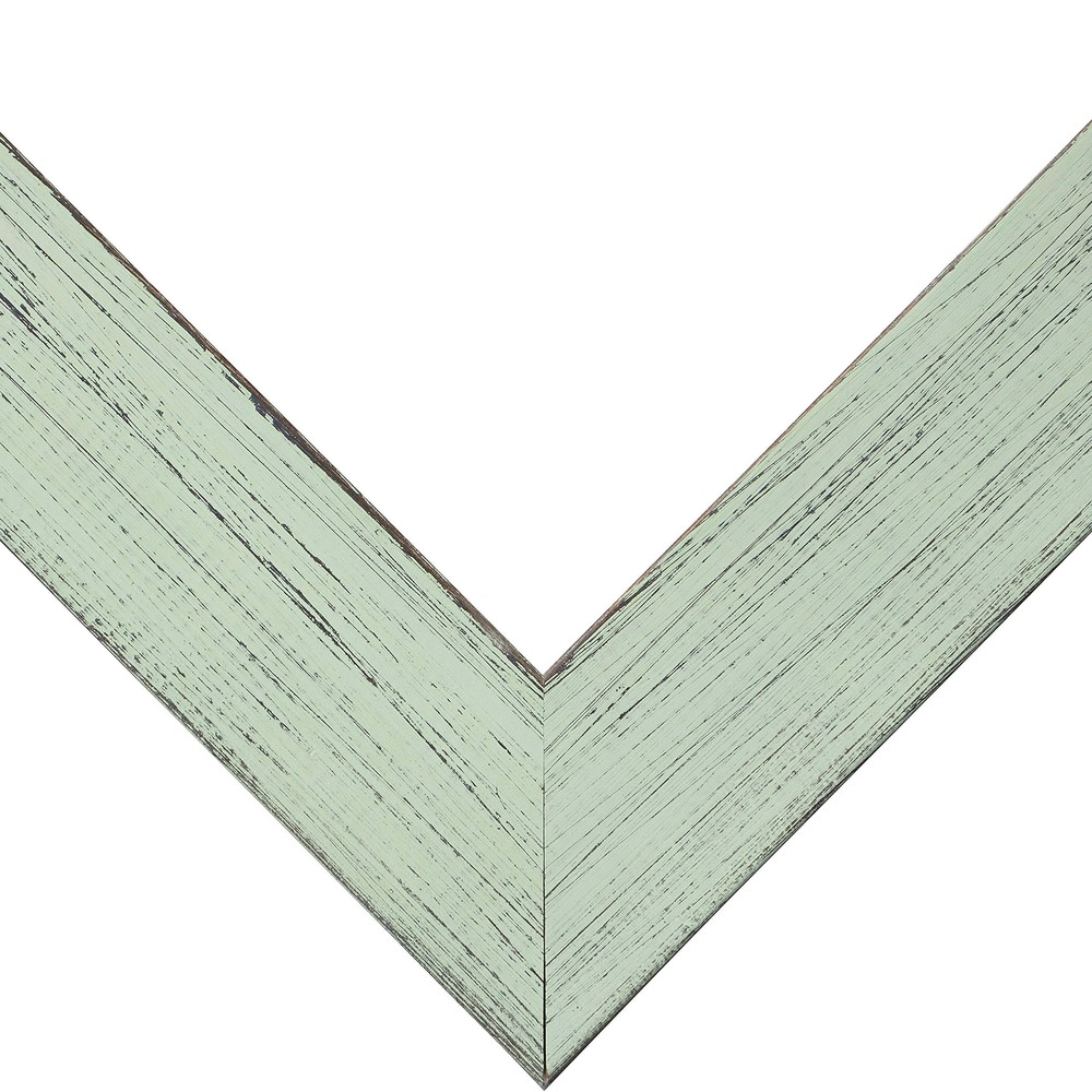Rustic style; weathered light green with visible wood grain; painted finish **IMPORTANT** THIS IS A NATURAL WOOD PRODUCT. WE CANNOT CONTROL VARIATIONS IN COLOR OR GRAIN PATTERN. Frame includes: glass, rigid black backing and pre-attached stamped hanging hardware Frame holds a 9 x 12 inch photo/print/poster (viewable area reduced by .25" on each side due to frame lip) Frame moulding is 1.5 inches wide; solid wood construction Frame is designed for WALL HANGING only (hanging hardware allows for portrait or landscape orientation)
