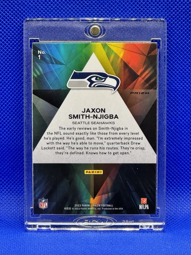 Season: 2023 Type: Sports Trading Card Autographed: No Original/Licensed Reprint: Original Language: English Card Name: SSP Year Manufactured: 2023 Sport: Football Card Thickness: 20 Pt. Material: Card Stock Card Number: 293 Player/Athlete: Jaxon Smith-Njigba Team: Seattle Seahawks Country/Region of Manufacture: United States Features: 1st Edition, Base Set, Chase, Collectors Edition, Embossed, Exchange/Redemption, Exclusive, Hologram, Insert, Limited Edition, Parallel/Variety, Rookie, Short Print Manufacturer: Panini Card Size: Standard Event/Tournament: Super Bowl Set: 2023 Panini Prizm Parallel/Variety: Rookie