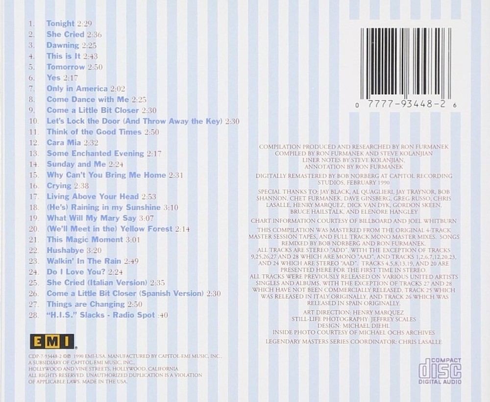 Further Details Title: Come a Little Bit Closer: The Best of Jay and The Americans Condition: New Format: CD EAN: 0077779344826 Genre: Pop Release Date: 01/12/2007 Description: EDITORIAL REVIEWS Discovered and christened by Leiber & Stoller, Jay & the Americans became a fixture of the '60s pop charts with their wistful harmony hits such as She Cried; Only in America; Come a Little Bit Closer; Cara Mia; This Magic Moment, and Walkin' in the Rain. This definitive single disc collections rounds up those hits, plus more of their best, and even a commercial jingle for H.I.S. Slacks. 28 tracks in all! Country/Region of Manufacture: USA Language: English No Of Discs: 1 Artist: Jay & The Americans Record Label: EMI Release Year: 2007 Missing Information? Please contact us if any details are missing and where possible we will add the information to our listing.