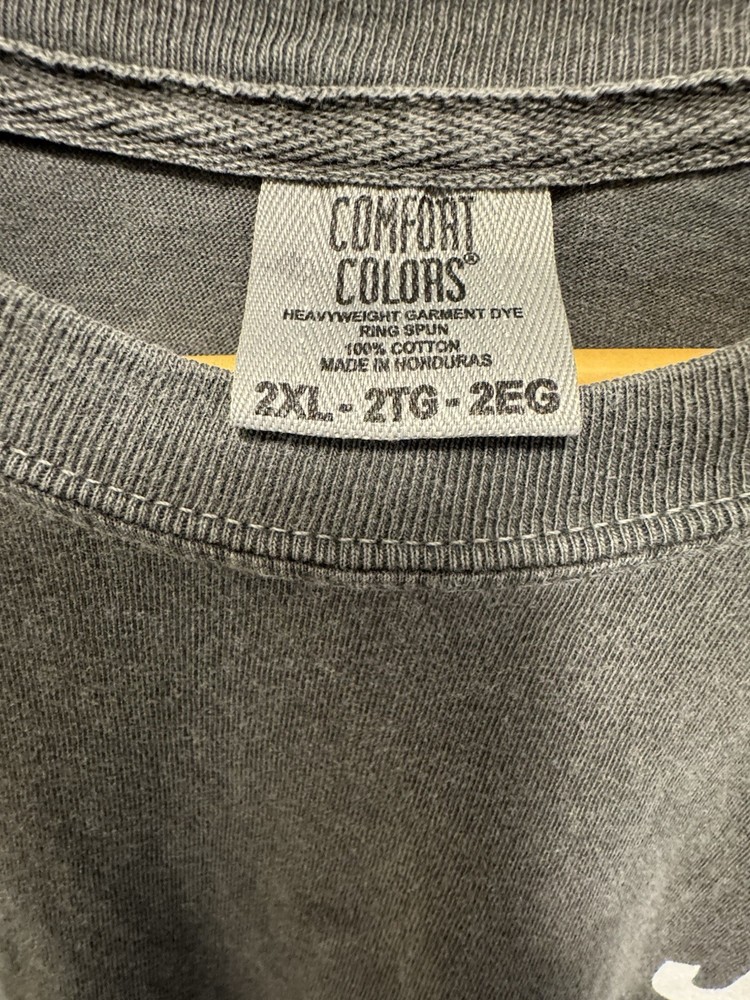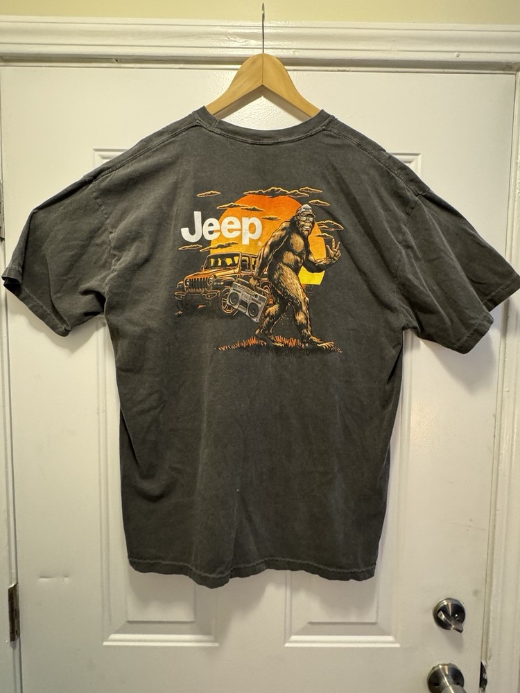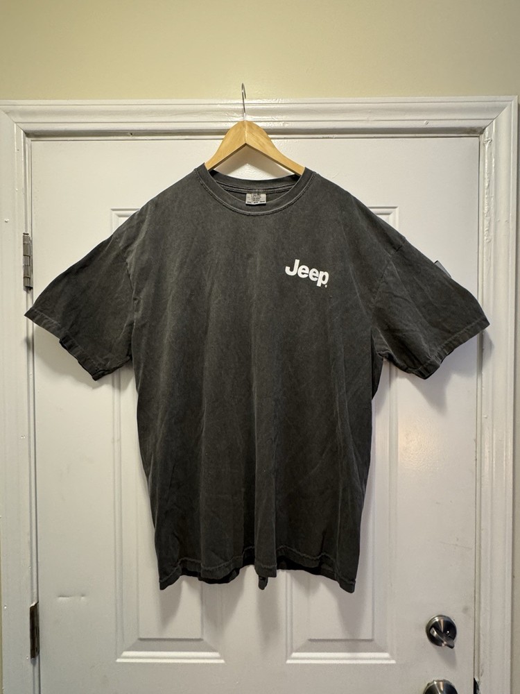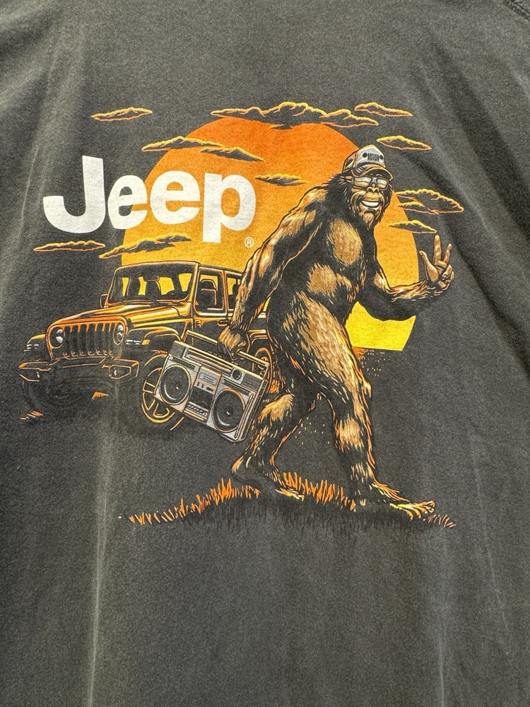Official Jeep graphic T-shirt printed on a Comfort Colors heavyweight cotton blank. Features a small Jeep logo on the front chest and a large back graphic with a Bigfoot/Sasquatch scene, Jeep Wrangler, and sunset design. Garment-dyed fabric gives this shirt a naturally faded, broken-in look. Details: • Men’s size XXL • 100% cotton • Heavyweight Comfort Colors tee • Relaxed fit • Made in Honduras Condition: Pre-owned with visible fade consistent with garment-dyed Comfort Colors shirts. No holes or tears noted. Please see photos for exact condition. ⸻ 🔹 Item Specifics • Brand: Jeep • Size: XXL • Size Type: Regular • Color: Black / Charcoal • Material: Cotton • Fabric Type: Knit • Sleeve Length: Short Sleeve • Fit: Relaxed • Theme: Jeep, Off Road, Bigfoot, Outdoor, Adventure • Department: Men • Vintage: No