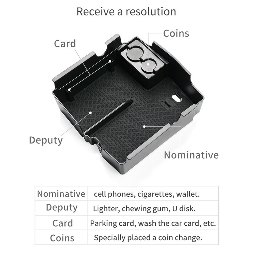 Product description Feature: 1.【KEEP THINGS ORGANIZED IN THE VEHICLES】Fits Perfect for 2018 2019 2020 The Owners of Wrangler JL Who Like To Keep Things Organized In The Vehicles.highly Recommend It For Those Of Us Who Have A Lot Of Stuff And Might Have A Tinge Of OCD! 2.【FIND THE ITEMS YOU NEED IN TIME】: As The Console Is Normally Just A Deep Box, Having The Ability To Organize Things In The Compartments Makes It Much Easier To Keep The Truck Tidy. You Didn't Know You Needed It Until You Got It, Also Wouldn't Want To Go Without It! 3.【IT DOESN'T INTERFERE WITH OPENING/ CLOSING THE CONSOLE LID 】100% Fit Perfect JL Armrest Storage Box and Will Not Interfere With Opening/ Closing The Console Lid Just Need A Slight Downward Pressure Will Cause It To Latch 4.【NO TOOLS REQUIRED TO INSTALL】: The Organizer Box No Need For Any Tool Installation, No Need To Make Any Modifications To Your Armrest Box. Very Easy To Use. Specifications: Material:ABS Color: Black Condition:New Fitment: For 2018-2019 2020 2021 2022 Jeep Wrangler JL Gladiator JT Package included: 1 x Piece center console tray 1 x Piece non-slip rubber mat Delivery details 1. Make sure the shipping address you wrote during the exam is correct. We are not responsible for any incorrect or non-existent addresses. 2. Items are generally sent out within 3 business days after payment. About us We are the best sales team and we can offer you the best support, the best quality, the best service. If you are interested, we are waiting for your contact Contact us We will reply to this email within 24 hours (excluding weekends and holidays) If you don't receive a response within 1-2 business days, all replies will be sent to your email, check
