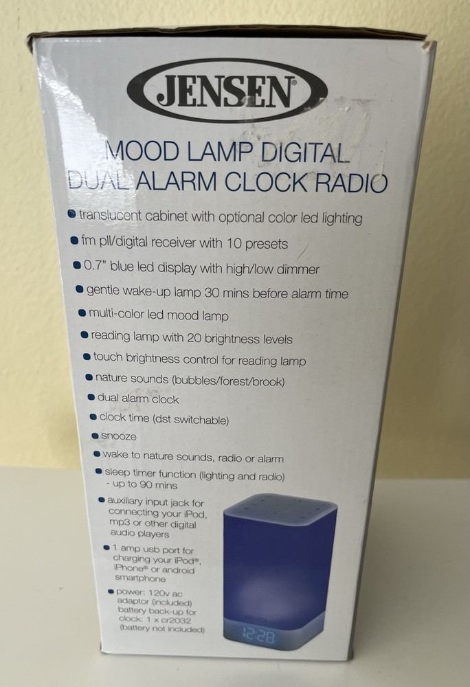 The Jensen JCR-370 Mood Lamp Digital Dual Alarm Clock Radio is a stylish and functional addition to any bedroom. With a rotating color scheme, this clock radio offers a unique and customizable ambiance. The digital display and dual alarm feature ensure waking up on time with ease. Powered by electricity, this clock radio is reliable and convenient for everyday use.