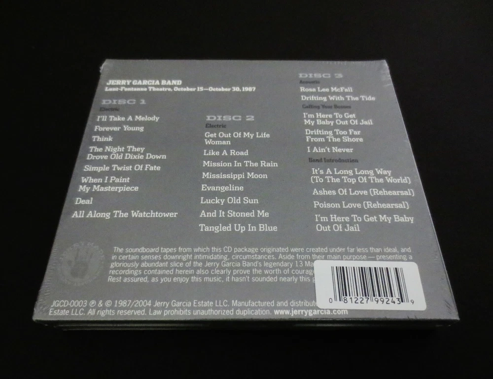 Jerry Garcia - Jerry Garcia Band : Jerry Garcia Band & Jerry Garcia Acouctic Band : Pure Jerry 3 : Lunt Fontanne - New York City - New York, NY ( NYC ) - October 15-30, 1987 ( 10/15/1987 - 10/30/1987 ) : 3 CD : 2004 (1987/2004) Jerry Garcia Estate, LLC - JGCD0003 : Brand New / Factory Sealed ! : Electric ! & Acoustic ! : JGB !! & JGAB !!! The " Best Of The Rest ! " from the Legendary !! October 1987 J.G.B. & J.G.A.B. Shows on Broadway ! in New York City !! ... Amazing ! '87 Electric ! Jerry Garcia Band !! & Acoustic ! Jerry Garcia Acoustic Band !! - ' Live ' in N.Y.C. !!! Garcia Fans !!! This was an Unbelievable ! & down-right Monumental !! run of Shows for both the Jerry Garcia Band ! & ( the too-short-lived ) Jerry Garcia ' Acoustic ' Band !! If there was only such thing as a ' Time Machine ' & Thirteen ( 13 ) Magical Tickets ! would appear -- I'd be there in a flash, for all of it ... every single-note ! But heck, we'd probably all be there with that kind of scenario though, right ? Ha ! Many of you were indeed the lucky-ones who made it to a night, nights, or maybe the whole darn kit & caboodle - all 13 Shows !?!! I sure hope so ... This was without any question a run to behold & this 3-CD Set captures a collection of JGB & JGAB Highlights ! from this Wonderful ! stand of " Jerry & his Pals on Broadway in N.Y.C. !! " ( on October 15-30th, 1987 ) !!! Also to note : The Entire ! 10/31/87 Show(s) - Both of them ( 2 Acoustic & 2 Electric Sets Each ! ) was also released as " Pure Jerry 2 " ( 4-CD Set ), so if you acquire this 3-CD Set along with the ' other ' 4-CD Set you will indeed have the ' Entire ' professionally released & Truly-Magical ! CD music ( Seven ( 7 ) Discs ! ) from this Stellar ! Event of Legend ! !... the 1987 Garcia Broadway Concert Series !!! To me, this release ( Pure Jerry 3 ) & the 10/31/87 ( Pure Jerry 2 ) release are collectively one of the Most-Crucial ! - Incredible ! - Important ! - and Enjoyable ! releases we have ever seen released to date professionally in the digital-era. Enjoy !!! As with this one, it's pretty hard not to ... Wow !!! -- the J.G.B. ! & J.G.A.B. !! in N.Y.C. !!! - in 1987 !!!! TRACK LISTING >>> Jerry Garcia Band & Jerry Garcia Acoustic Band ' Live ' at the Lunt-Fontanne Theatre in New York City on Broadway ! : " The Best Of The Rest " ( October 15-30, 1987 ) : DISC 1 ( ELECTRIC ) : I'll Take A Melody Forever Young Think The Night They Drove Old Dixie Down Simple Twist Of Fate When I Paint My Masterpiece Deal All Along The Watchtower DISC 2 ( ELECTRIC ) : Get Out Of My Life Woman Like A Road Leading Home Mission In The Rain Mississippi Moon Evangeline Lucky Old Sun And It Stoned Me Tangled Up In Blue DISC 3 ( ACOUSTIC ) : Rosa Lee McFall Drifting With The Tide "Calling Your Bosses" I'm Here To Get My Baby Out Of Jail Drifting Too Far From The Shore I Ain't Never "Band Introduction" It's A Long Long Way ( To The Top Of The World ) Ashes Of Love ( Rehearsal ) Poison Love ( Rehearsal ) I'm Here To Get My Baby Out Of Jail Item Condition : This Rare ! Out of Print Jerry Garcia ( 2004 Jerry Garcia Estate, LLC release ) Jerry Garcia Band & Jerry Garcia Acoustic Band - Pure Jerry 3 - Lunt-Fontanne, New York City - The Best Of The Rest - October 15-30, 1987 ( 3-CD ) Set is Brand New / Factory-Sealed ! Please see all photos provided. Photos included are of the actual item you will receive. Pure Jerry # 3 !!! - on Broadway ! in New York City !! - " The Best Of The Rest " !!! ... Enjoy !!!!! Please ask any questions before bidding/buying & Best of Luck ! ( also ... please feel free to click the 'see other items' button above to check-out my other related live listings - Thanks ! ) U.S. & International buyers welcome (additional shipping charges & delivery time will apply for international destinations). Shipping charges include delivery confirmation on every item. Returns accepted within 14 days of purchase if item is returned brand new / factory sealed (unopened with original factory-sealing shrink wrap perfectly (100%) in tact), unused & undamaged (buyer pays return shipping). All items will be shipped as merchandise with the winning bid entered as item value (2023-2024).