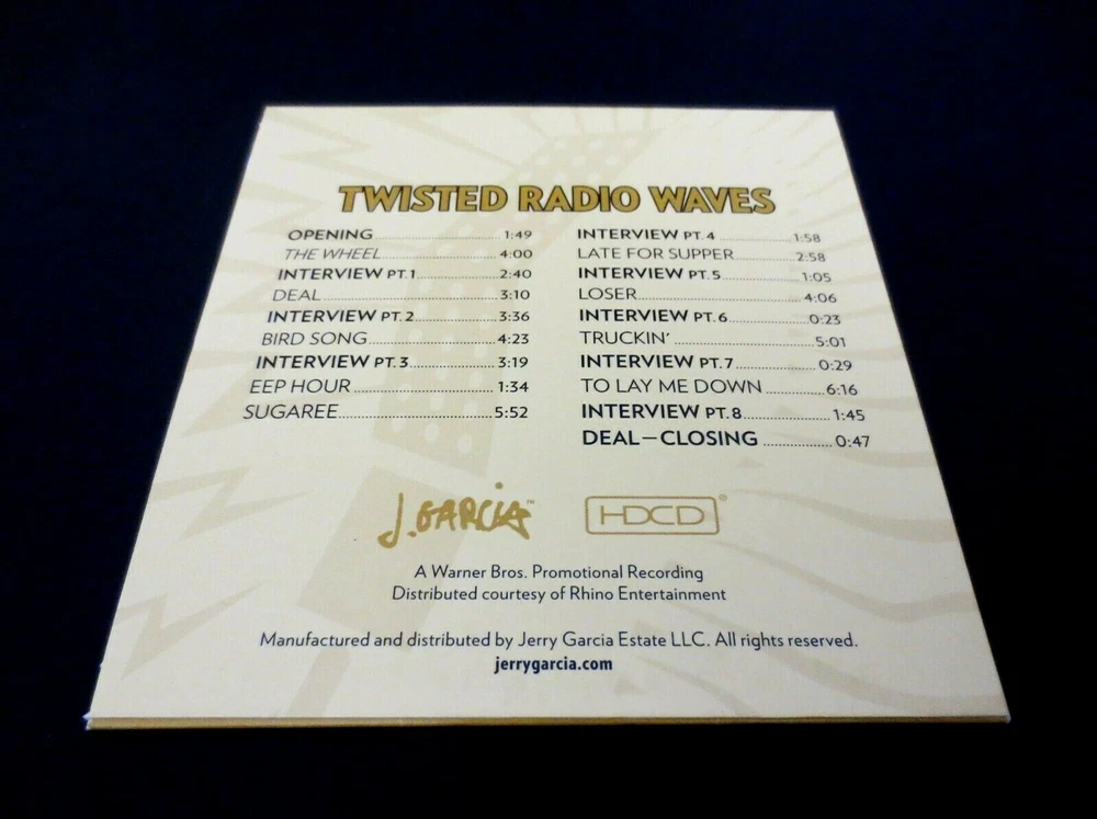 Jerry Garcia : Jerry Garcia / Dr. Demento : Twisted Radio Waves !!! : Bonus Disc CD : Dr. Demento 1972 Radio Interview with Jerry Garcia + " Garcia " Music : 2006 (1972/2006) Jerry Garcia Estate, LLC / Rhino ( JGE / Rhino ) : Brand New ! : Amazing ! J.G. on 1972 Radio !!! An Amazing ! Spoken-Word Interview ! with Music ! - featuring Jerry Garcia ! & Dr. Demento ! - Bonus Disc CD from " The Very Best Of Jerry Garcia !!! ". Garcia Fans !!! Offered here is the Amazing ! " Bonus Disc CD " that was offered with the " The Very Best of Jerry Garcia " ( 2-CD Disc Set ) !!! This is an Amazing ! - Informative ! - and both Serious, yet still Very-Humorous !! ( naturally ... ) Interview with the Grateful Dead & Jerry Garcia Solo Band(s) Musical-Mastermind ! himself : Jerry Garcia - being Interviewed by D. Demento in 1972 ( with Bob Weir of the Grateful Dead & Barry Kearson ' laughing ' mainly at & with ! Garcia in the background ). This is an Incredible ! release - in that it not only features Nine ( 9 ) Tracks from Jerry's 1st solo album " Garcia " - but it interchanges them ' between ' the Interview segments - thus offering a window-pane clear view into the mind & thoughts of a restless & ready - yet still very caring - concerned & mostly-optimistic Garcia - the young Garcia ( right around only 30-Years old here ! ) in this Fabulous ! 1972 Radio-Interview hosted by the famous " Dr. Demento " ! This release is one of a kind, no doubt - it is so delightful to hear - and is an Absolute ! " Must-Hear / Must-Have " for the die-hard Jerry Garcia Fan & certainly the serious Music-Rarities Collector. Just to wet your whistle ... here are the ' 1st words ' out of Jerry's mouth - that ' start ' this Fine & Extremely-Historic ! '72 Dr. Demento fifty-five minute ( 55:11 ) Radio-Broadcast Interview ( Wow ... see what I mean ? - Ha ! ) ... Enjoy !!!!! Garcia ( right-out of the starting gate ! ) : " The way I'm lookin' at it more & more - is I see the Rock 'n Roll Band as in the role of the Bank-Robber. Why not man, you know ? Everybody else steals from America, why not us too, you know ??! The point is to get the thing on ... the way I see it. And if takes makin' money to do it, then makin' money is what you gotta do, to do it ! ". Yeah Jerry ! Completely-Classic . . . I mean just check-out the Track Listing below offered on this treasure of a Garcia & Co. release ??!?! . . . Very-Impressive. TRACK LISTING >>> Twisted Radio Waves : 1972 Dr. Demento Radio Interview with Jerry Garcia ( with Bob Weir & Barry Kearson present ) - including Jerry Garcia " Garcia " J.G. / Grateful Dead Music : Opening The Wheel Interview Part 1 Deal Interview Part 2 Bird Song Interview Part 3 Eep Hour Sugaree Interview Part 4 Late For Supper Interview Part 5 Loser Interview Part 6 Truckin' Interview Part 7 To Lay Me Down Interview Part 8 Deal - Closing Total Running Time ( approximately ) : 55:11 * Item Condition * : This Jerry Garcia Dr. Demento Twisted Radio Waves Bonus Disc CD ( 2006 Jerry Garcia Estate, LLC / Rhino release ) is Brand New ! This Bonus Disc CD ( 1-CD / Artistic Single-Sleeve ) was received factory direct with some very light surface wear, as this CD was originally distributed without any factory-sealing outer shrink wrap - just as shown in the photos provided (please see photos). This Bonus Disc CD has been very-carefully stored inside protective plastic in my professional CD rack since it's initial 2006 release. Please see all photos provided. Photos included are of the actual items you will receive. Dr. Demento ! & Jerry Garcia !! ... on the " Twisted Radio Waves !!! " - in 1972 !! ... Enjoy !!!!! Please ask any questions before bidding/buying & Best of Luck ! ( also ... please feel free to click the 'see other items' button above to check-out my other related live listings - Thanks ! ) U.S. & International buyers welcome (additional shipping charges & delivery time will apply for international destinations). Shipping charges include delivery confirmation on every item. Returns accepted within 14 days of purchase if item is returned brand new (unused/unplayed) & undamaged (buyer pays return shipping). All items will be shipped as merchandise with the winning bid entered as item value (2023-2024).