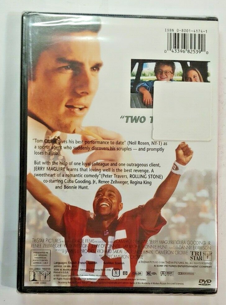 Run Time:139 min.Director:Cameron CroweMovie/TV Title:Jerry MaguireRelease Year:1996Item Width:5.52 inUPC:0043396825390Producer:Cameron Crowe, James L. Brooks, Laurence Mark, Richard Sakai, Robert FentressFormat:DVDRating:RItem Length:7.54 inItem Weight:0.23 lbStudio:Sony Picturesgtin13:0043396825390Country/Region of Manufacture:MexicoSub-Genre:DramaGenre:Comedy VideoItem Height:0.58 in