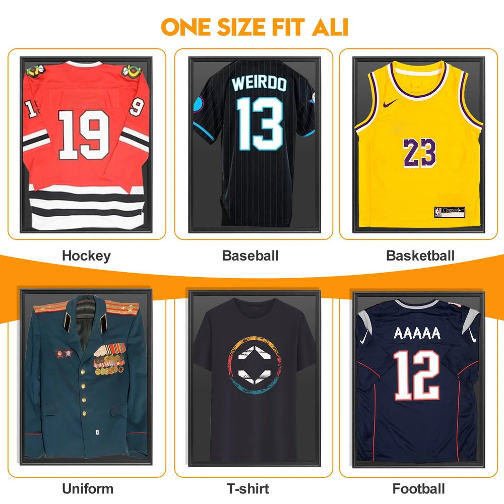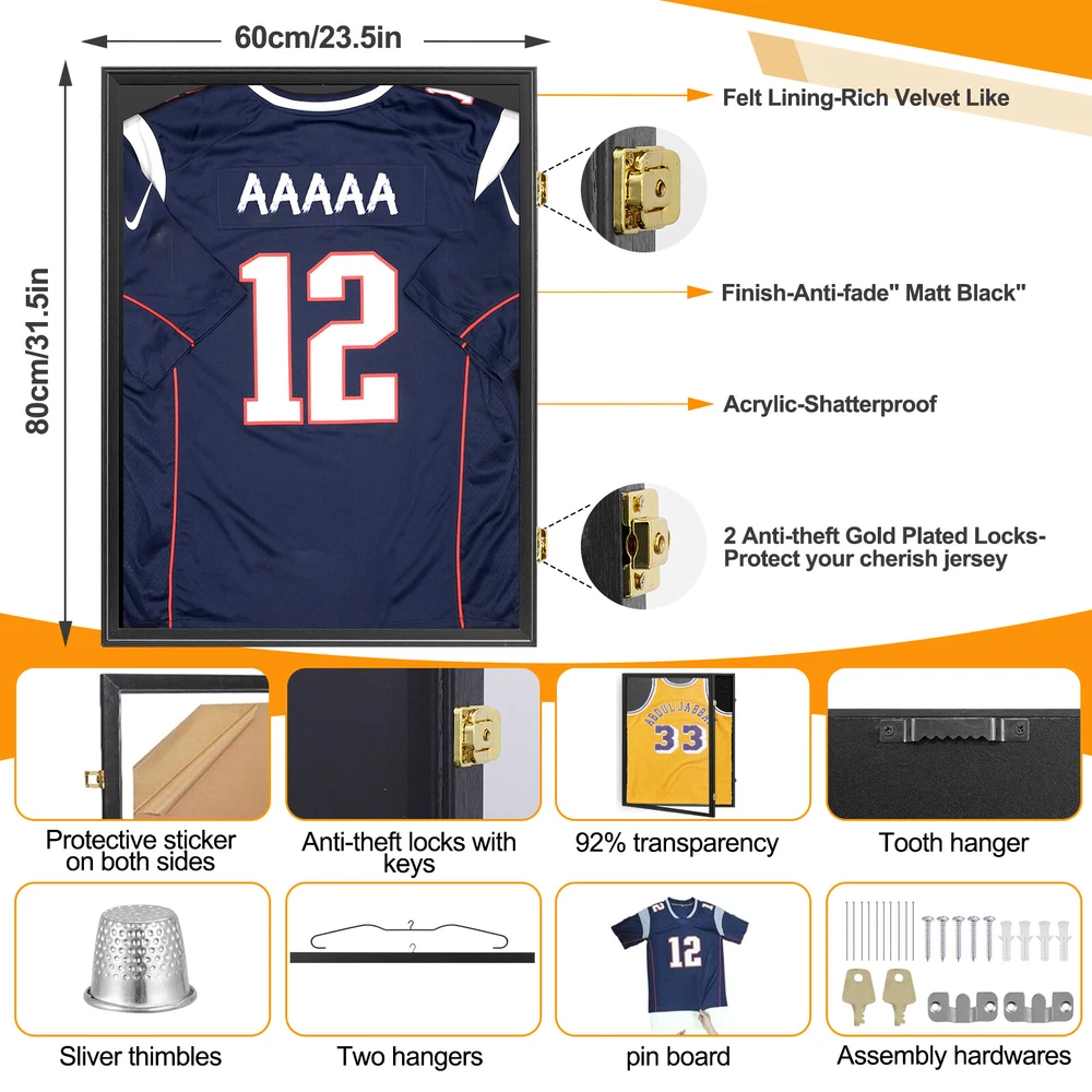 Jersey Display Case Frame Shadow Rack Box Exquisite Lockable with Hanger Wood Product Description Description: Made of solid pine wood with exposed metal hardware, this jersey display frame case is double enough to display in your home for years to come. With high transparency PS board, this Jersey Display Frame is perfect for storing and showing your jerseys, photos, crafts or other memorabilia clearly. Coming with lengthened hanger, your jersey will look more upright in the plush-lined frame. The classic black appearance fits exsiting decor of your room. Features: Durable pine material with beautiful spray paint, complementing home decor UV resistant door with high transparency, offering sun and dust protection Suitable for varied of jersey from your favorite basketball, soccer team PS board fixed by 10 press buckles in the door frame for more stability Hinged door with gold locks for opening easily and closing tightly Perfect to store and display your valuable sports memorabilia Back metal hooks are convenient for hanging on the wall Strong packaging ensures safety during transportation Anti-scratch film avoids scratches and prevents dust Specifications: Color: Black Material: Pine Net Weight: 5.18 lb Overall Dimension: 23.23"L x 1.61"W x 31.3"H Inner Dimension: 22.24"L x 0.98"W x 30.32"H Hanger Length: 19.69" PS Board Thickness: 0.08" Package Includes: 1 X Jersey Frame Display Case 1 X Hanger Note: Not Include Jersey Payment Before you palce an order, please kindly make sure that you have a paypal account. We accept PAYPAL payment only. Payment should be completed within 2 days after auction closed, or unpaid dispute will be filed for an closing auction. An unpaid case will be filled after 4 days. Delivery details We only ship to USA ! We ship to your eBay address. Each package will be shipped to Australia by AU Post Regular Parcel with tracking number. Please check your shipping address carefully before checkout, it can't be changed if order completed. All items will be shipped within 1-2 business day upon receipt of payment.Orders placed on weekend will be shipped within 3 days. If you do not receive your item in 7-10 business days.please contact us immediately for further assistance. We will be responsible for any damages or losses incurred in the shipping process. About us We maintain high standards of excellence FIVE STAR and strive for 100% customer satisfaction! Positive Feedback is very important to us. We hope that you contact us immediately Before you give us neutral or negative feedback, so that we can satisfactorily address your concerns. We promise to offer the lowest price and high quality produce. Our working time: From Monday to Friday(9:30 am to 18:00pm), we don't working on holidays ,hope you can understand and know that , thank you. Please always talk to us via ebay Message. We appreciate your business and look forward to growing our e-Bay sales with satisfied customers. Feedback Contact us If you have any questions, please feel free to contact with us by ebay Message during our business hours ( 9:30a.m. to 5:30 p.m.), or email us through eBay, we will try our best to help you to resolve it. For any presale or after-sale questions,please do feel free to email us! Due to the time difference, each email will be replied within 1 working day,and weekend will be delayed a bit.