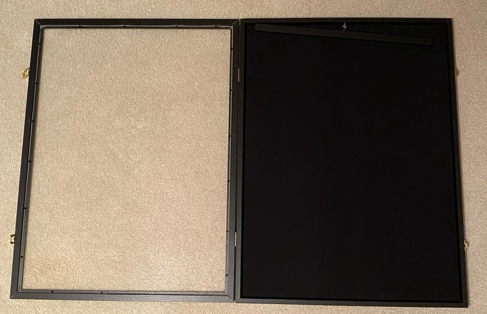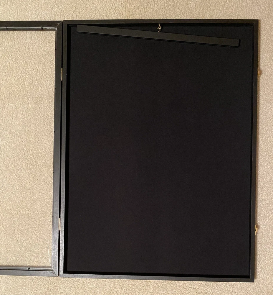 Made out of wood with Anti-fade Matt Black finish, IHEIPYE Jersey Frame is durable enough for a long-lasting working life. Shatter Proof 92% transparency and 98% UV protection acrylic glass panel, velvet like felt lining along with two gold plated anti-theft locks can well protect your cherished sports memorabilia or collectibles. Customer-friendly accessories and visual user manual are packed all together with our sincere service! Large size display frame 31.25" x 23.25" x 1.5" fits most sports jerseys such as Baseball, Basketball, Football, Soccer, Hockey etc. Make it a great gift for sports fans! It can also be used as a shadow box to display military uniform, graduation memorabilia and other cherish memories.
