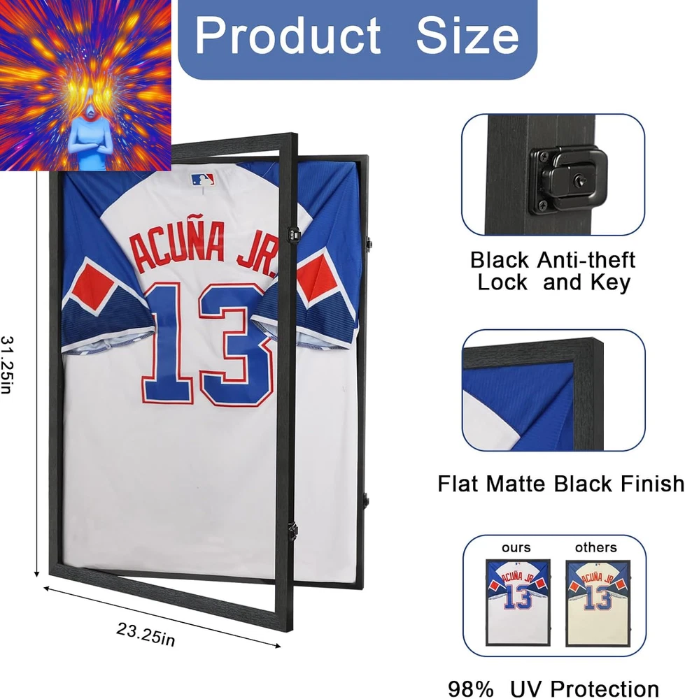 Store New Arrivals Add to Favorite View Feedback Contact Jersey Frame Display Case - Wall Mount Sports Jersey Display - Lockable Flat Jersey Shadow Box with 98% UV Protective Acrylic Door for Football,Hockey,Basketball,Baseball Sports Jersey - Black Description Frame Size 31.25 x 23.25 x 1.5 inches Item model number JerseyFrame-1Pcs Mounting Type Wall Mount Assembly required No Batteries required No Product Dimensions 23.25"L x 1.5"W x 31.25"H Item Shape Black Frame with Black Lock 1 Pcs Country of Origin China Fabric Type Wood Item Weight 11.23 pounds Color Black Shape Black Frame with Black Lock 1 Pcs Frame Material Wood Included Components Shadow Box Wood EXTERIOR DESIGN - Nixvexy jersey frame is made of wood covered with a black fade-resistant matte finish, along with a flat frame design that is not only durable, but also more smooth and harmonious. Highly translucent acrylic panels and black metal anti-theft locks protect the collection from dust and curious fingers; black velvet lining better complements your prized jersey. JERSEY PROTECTION - The high-definition, 98% UV - protected acrylic panels not only protect against dust, but also protect the jersey from yellowing and fading in natural light. The metal anti-theft locks and opening door are designed to make it easy to change jerseys and other collectibles, while keeping them safe while on display. MULTIPLE DISPLAY OPTIONS - Nixvexy jersey frame comes with a metal hanger, a wooden hanger and a KT board. The hangers is suitable for framing sleeveless and short-sleeved jerseys, while the KT board is more compact and flat, suitable for long-sleeved jerseys. You can choose the right way of framing jerseys according to your actual needs. The jersey frame comes with metal hooks and hanging accessories, which can help you hang your precious jerseys proudly on the wall for display. FIT SIZE - Nixvexy jersey case measures 31.25" x 23.25" x 1.5", which can fit most jerseys, such as basketball, soccer, baseball, field hockey and so on. It can also be used as a large shadow box for displaying your graduation memories, photos, sports memorabilia and other precious items, etc. IDEAL GIFT FOR SPORTS FANS- Smooth, beautiful and durable design, multiple display options, excellent collection display and protection and secure packaging design make the Nixvexy jersey frame an ideal gift for family, friends and sports enthusiasts. Product Description Nixvexy Jersey Frame Display Case Made of wood covered with a black fade-resistant matte finish, along with a flat frame design. Durable,more smooth and harmonious. Suit For Different Size Jersey Nixvexy jersey case measures 31.25" x 23.25" x 1.5", can fit most kind of jerseys, such as basketball, soccer, baseball,hockey and so on. Black Anti-theft Locks protects your cherish jersey. Metal Hanger Metal Hanger is suitable for displaying short-sleeved jerseys/ Wooden Hanger Wooden Hanger is suitable for displaying sleeveless jerseys. Pin Board Pin Board can display jersey more firmly and without wrinkle, suitable for long-sleeved jerseys. ABOUT US We offer the best prices around on high quality products. Our E-store includes media such as books, movies, music and games while offering electronics, toys, sporting apparel, clothing, tools, general home, garden items and more. SHIPPING We are always working hard to ensure your package arrives as soon as possible. Please understand that some factors like weather, high postal traffic, and the performance of shipping companies are outside of our control. We offer free shipping to the lower 48 states and ship within 2 business days of payment, usually sooner. We do not accept P.O. Boxes. Please provide a physical address. For shipping outside of the continental USA, we only use eBay's Global Shipping Program.The item is shipped to KY and then sent to the rest of the world. International customers are responsible for all duties and taxes. Continue to check out in order to calculate costs for shipping the item to your country. Messages regarding eBay's Global Shipping Program MUST be directed at eBay EXCLUSIVELY. RETURNS We offer a 30-Day Return Policy on items which you are not completely satisfied with. You have the option for a full-refund or an exchange of the item. No returns are available on items shipped outside of the USA. PAYMENT We accept PayPal. CONTACT US This page content is yet to come Please ad us to your favorite seller and visit again later Thank You CUSTOMER SATISFACTION We try our very best to make sure every customer is completely satisfied. If there's a problem, message us! We're happy to help. WE ACCEPT Copyright © 2021 AutoDS. | All Rights Reserved