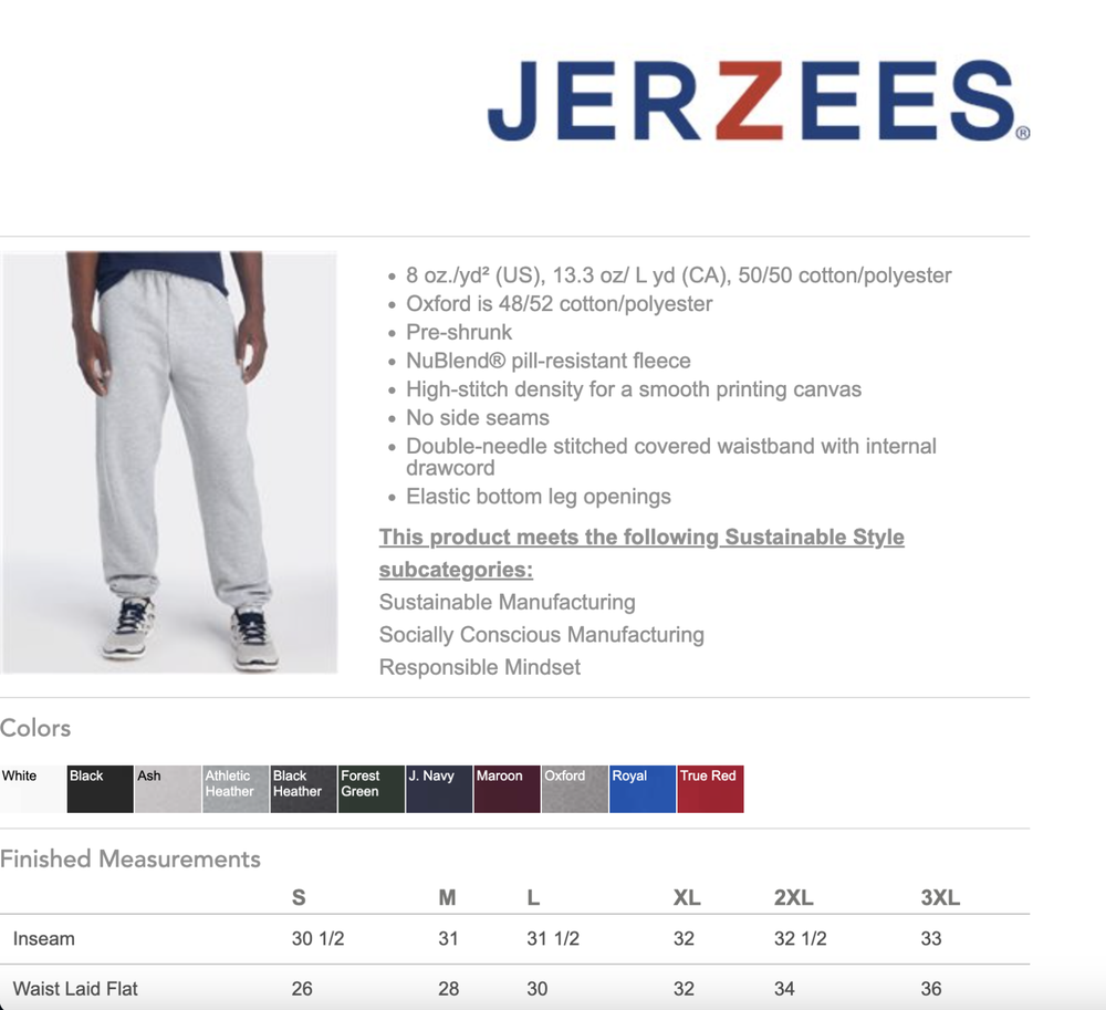The JERZEES NuBlend® Sweatpants - 973MR are your go-to for comfort, durability, and style. Crafted with a high-quality 50/50 cotton-polyester blend, these sweatpants are made using NuBlend® pill-resistant fleece for a smooth, long-lasting finish that stands up to regular wear and washing. Designed for versatile use, these sweatpants feature a covered elastic waistband with an inside drawcord for a secure, adjustable fit. The side-entry pockets provide convenient storage, while the elastic cuffs at the ankles ensure a snug fit for a streamlined look. Key Features: • Fabric: 50% Cotton / 50% Polyester NuBlend® Pre-shrunk Fleece • Pill-resistant for a smooth surface • Covered elastic waistband with an inside drawcord • Side-entry pockets for functionality • Elastic cuffs at the ankles for a secure fit • Classic fit for ease of movement Perfect for lounging, workouts, or casual outings, the JERZEES NuBlend® 973MR Sweatpants offer a blend of comfort and practicality, making them a must-have addition to your wardrobe. Available in multiple colors and sizes to fit your style!