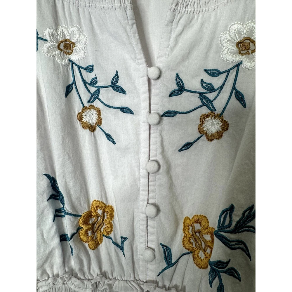 Jessakae Womens Long Sleeve Maxi Floral Embroidery White Dress Cotton India Made Lined 24" Pit to Pit